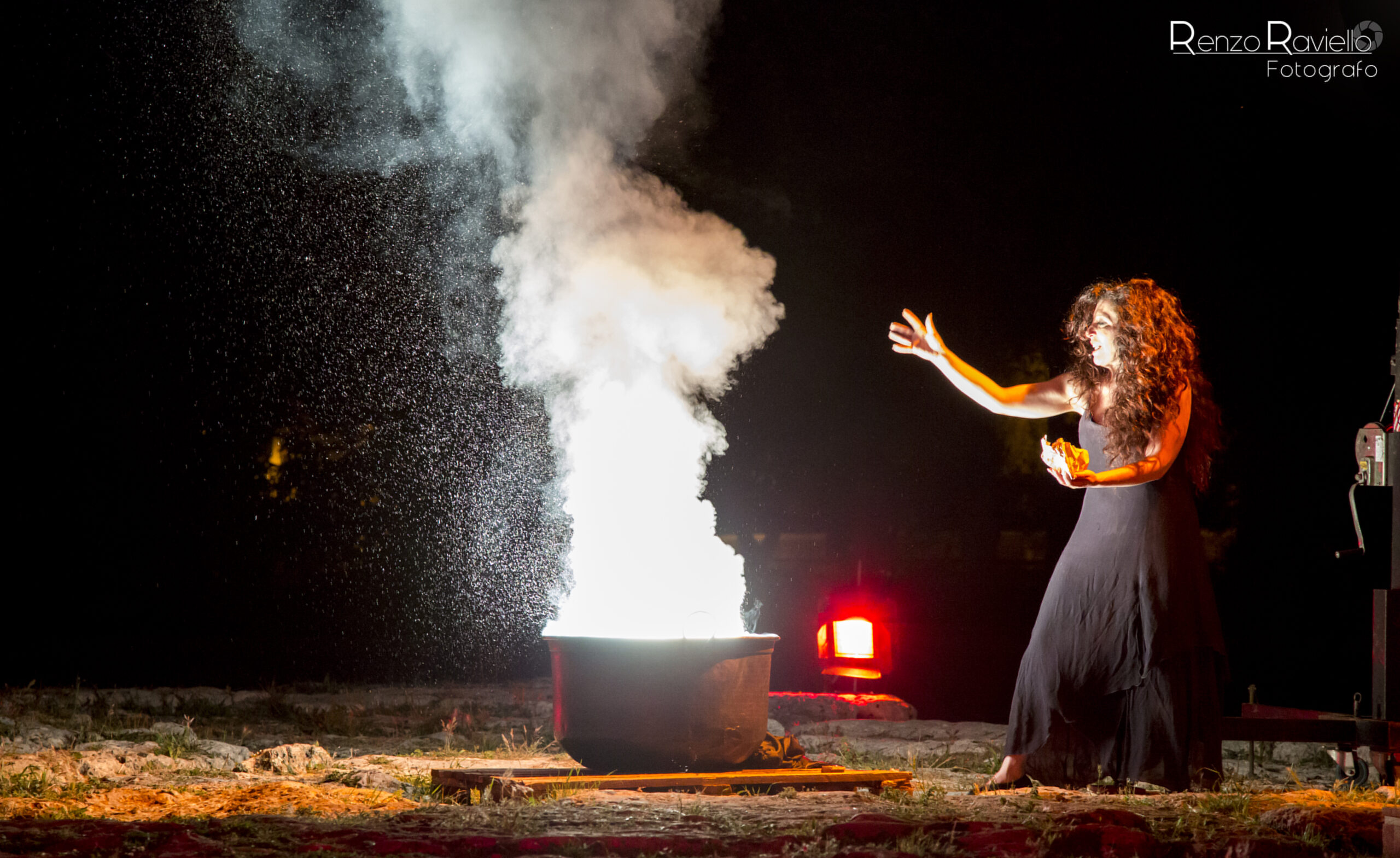La scena è un ring entro il quale il pubblico è avvolto. Persa la dimensione abituale, rompendo la “quarta parete”, lo spettatore è al centro della vicenda, proprio come succede nell’animo di chi si trova, costrette a rivivere il suo dramma ogni volta che il teatro lo chiede, o meglio ogni volta che il “dovere di catarsi” richiama l’essenza di un personaggio teatrale. In scena sette Medee, che rivivono il tormento dell’uccisione come estrema ratio, fino a giungere all’epilogo che chiude il cerchio, che presagisce un nuovo inizio…il ritmo ininterrotto di un’esperienza che da secoli il personaggio è votato a donare al pubblico e dal quale non può esimersi (destino dal quale non può prescindere) ed in questo ciclo v’è l’eterno tormento, dal quale per sua stessa natura non può liberarsi nonostante l’estrema sofferenza di ogni spettacolo.