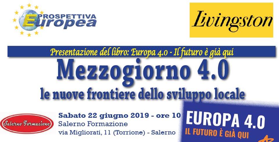 Il Mezzogiorno e la sfida dell’innovazione è il tema dell’incontro che si terrà presso Salerno Formazione domani, 22 giugno, alle ore 10.30. Il dibattito, che vedrà la partecipazione di professionisti e rappresentanti di organizzazioni sindacali, rientra nel ciclo di presentazioni del libro “Europa 4.0: Il Futuro è già qui” edito dalla casa editrice salernitana Livingston, a cura di Roberto Giuliani e Paolo Carotenuto e del team di Prospettiva Europea.