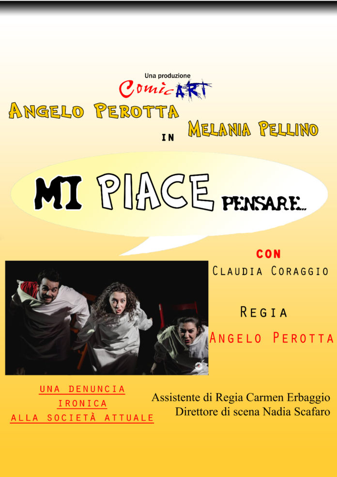 Si avvicina il terzo appuntamento con il cartellone de I Diversi Volti del Teatro targato La Ribalta di Salerno. La prossima data in cartellone è, infatti, quella di Sabato, 10 Novembre, alle ore 21 con “Mi piace pensare…” della Compagnia Comic Art. Il testo di Angelo Perotta è una vera e propria denuncia sociale che trova il suo punto di forza nell’originalità del testo e nella musicalità delle battute. Un testo nuovo, emozionante, ironico e allo stesso tempo drammatico. È un’opera che in un’ora rompe gli schemiclassici teatrali. Lo scrittore Angelo Perotta firma anche la regia teatrale dello spettacolo ed in scena con lui si intervalleranno Melania Pellino e Claudia Coraggio.