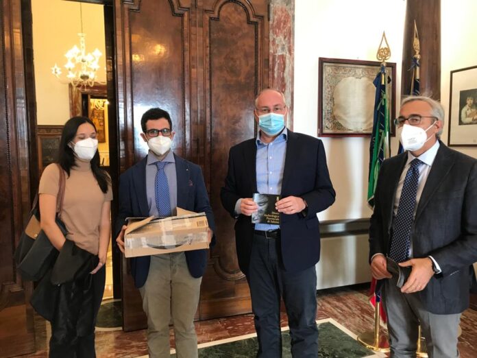 Stamattina a Palazzo Sant’Agostino, due giovani rappresentati del Rotaract, Andrea Bignardi e Roberta Marchesa, hanno consegnato al Presidente della Provincia, Michele Strianese, il materiale acquistato per il Museo Archeologico provinciale nell’ambito dell’iniziativa “Una notte al Museo” realizzata lo scorso maggio 2019, che prevedeva la valorizzazione del Museo archeologico anche attraverso una raccolta fondi per l’acquisto di attrezzatura da destinare a servizio della fruizione museale.