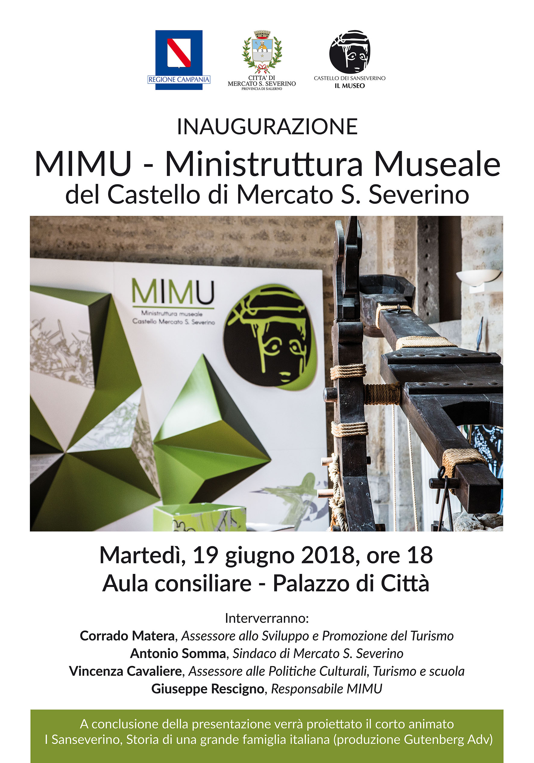 Inaugurazione della Ministruttura Museale (MIMU ) del Castello di Mercato S. Severino che si terrà Martedì 19 giugno 2018 alle ore 18,00 presso il Palazzo di Città – Piazza Ettore Imperio – Mercato S. Severino.