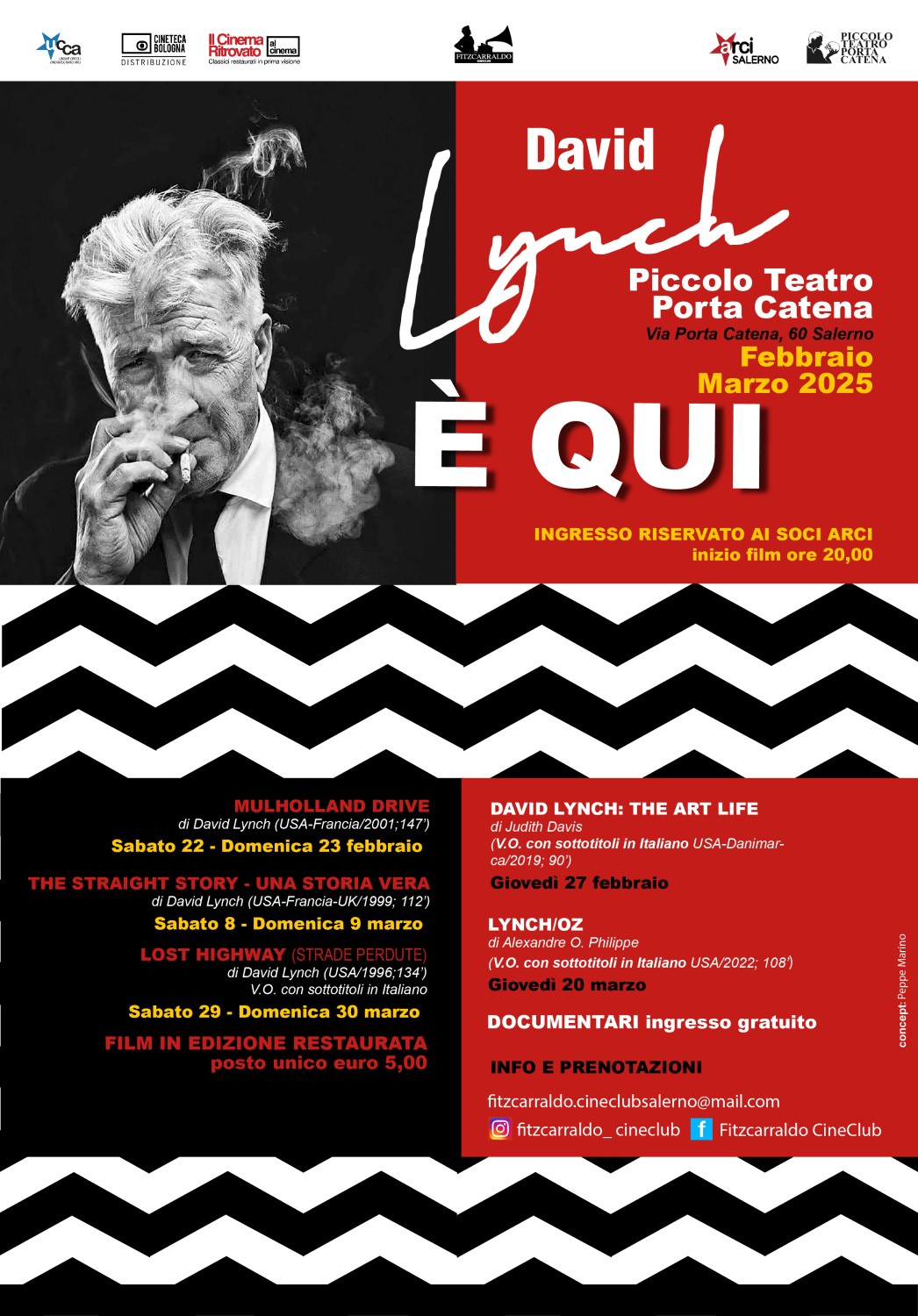 “Abbiamo voluto chiamare Fitzcarraldo il nostro progetto, nato dalla visione di un collettivo, un gruppo di amanti della Settima Arte, che vuole ritrovare il gusto del Cinema visto e vissuto in una sala buia, insieme agli altri. Il progetto non poteva che prendere le mosse da una piccola rassegna, che è un omaggio ad uno dei più grandi registi visionari, David Lynch, recentemente scomparso…” Così dichiara il Presidente, Francesco Arcidiacono, che annuncia la rassegna sul compianto cineasta, autore di capolavori come “The Elephant Man”, la serie “Twin Peaks” e “Mulholland Drive”.