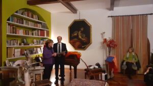 “E doppe ca lu Bambine se salvaje cu la manella santa lu carezzaje. Pignuole tu puozz’esse beneritte ca reparaste a Die zitto zitto. Si ogge bbuone tu aviste lu core de ‘ncienze sante purtarraje l’addore. E donna e lu Bambino se salvajeno ‘na mane peccerella ‘nce lassajeno. Pignuole tu che a Dio t’arapiste ‘nce purtarraje la mane ‘e Giesù Criste”.  Questi versi tratti dalla “Leggenda del lupino” raccontano della fuga della Sacra Famiglia in Egitto per scappare dalla strage ordinata da Erode. Durante la fuga la Madonna chiese aiuto a un albero di lupino per riparare Lei e suo Figlio. Ma il lupino si rifiutò. Così per il suo rifiuto il lupino fu condannato a dare per sempre frutti amari. Un pino, invece, permise a Maria e Gesù di nascondersi e, in  segno di ringraziamento, il Figlio di Dio ad ogni pinolo lasciò in dono la sua manina e l’odore inconfondibile dell’incenso”.  A raccontare questa famosa leggenda è stato il Maestro Rino Napolitano nel corso del suo recital natalizio, per chitarra e voce, proposto dal cantante e attore napoletano nella storica Villa Wenner di Pellezzano che è stata, dalla seconda metà del XIX secolo, residenza della famiglia Wenner, la principale promotrice degli insediamenti industriali tessili nella Valle dell’Irno . La serata è stata organizzata dall’associazione “Parco Storico Sichelgaita”, presieduta dalla professoressa Clotilde Baccari Cioffi e dalla dottoressa Rosa Scarpa, proprietaria della storica dimora e socia del sodalizio salernitano. Dopo i saluti della giornalista e scrittrice Claudia Izzo, che ha presentato il suo libro “La Primavera Fuori”, e dell’editore Francesco D’Amato, che ha presentato le sue nuove proposte editoriali, la  professoressa Clotilde Baccari Cioffi ha tracciato un bilancio dei primi sei mesi dell’anno sociale e augurato un anno di rinascita:” La rinascita  è nell’apprezzare le piccole cose come l’amicizia e la famiglia”.   La professoressa Clara Mattia Cuoco  ha  ricordato le origini pagane del Natale:” Nell’antica Roma, il 25 Dicembre, si celebrava la nascita del Sol Invictus”,  e recitato alcuni  brani  dedicati al presepe e  alla  tradizione del  Natale.
