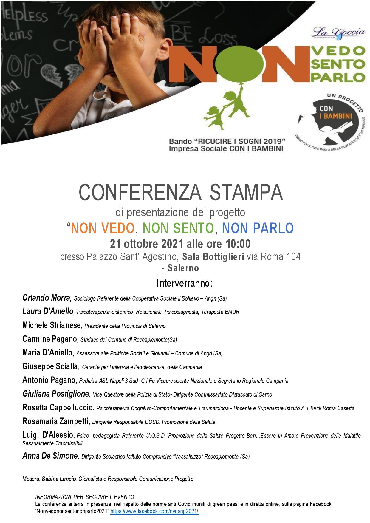 La conferenza si terrà in presenza, nel rispetto delle norme anti Covid e muniti di green pass, e in diretta online, sulla pagina Facebook “Nonvedononsentononparlo2021” https://www.facebook.com/nvnsnp2021/