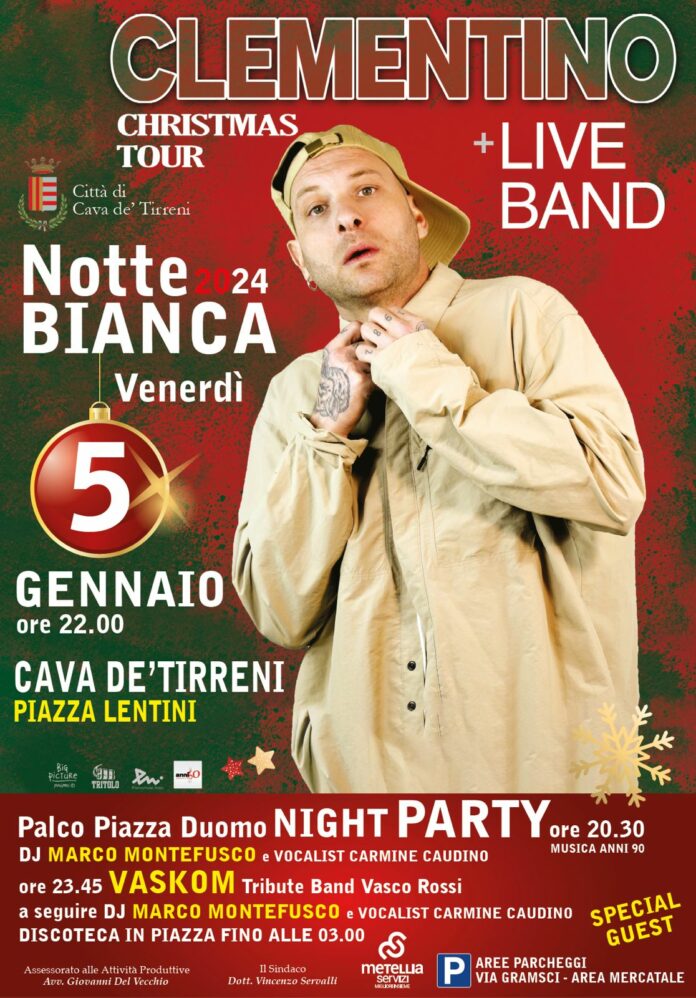 “Sarà un’edizione diversa con un più ampio coinvolgimento per contemperare le diverse anime dell’iniziativa e mantenere al meglio la vocazione della Notte Bianca quale notte del commercio – spiega l’Assessore alle Attività Produttive di Cava de’ Tirreni Giovanni Del Vecchio – abbiamo previsto il doppio palco in modo da favorire la passeggiata in piena sicurezza lungo il nostro meraviglioso borgo medievale per tutti coloro che vorranno dedicarsi agli acquisti e di accogliere più agevolmente il notevole flusso di spettatori che richiamerà certamente l’esibizione di Clementino. Sul piano viabilità ci siamo attrezzati per indirizzare tutti i veicoli nei parcheggi di piazzale Gramsci e dell’Area Mercatale e da quest’ultima sarà previsto anche il servizio navetta”.