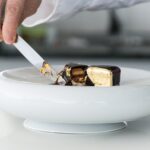 Il concetto della sacralità dell’oro collegato al cibo era diffuso anche in Cina e in Giappone, ma furono le ricche corti italiane medioevali e rinascimentali a usarlo come “ingrediente” simbolo di opulenza. Galeazzo Visconti nel 1386, in occasione delle nozze della figlia, fece servire pesci e volatili ricoperti da una sottilissima foglia d’oro. A Venezia nel 1561, in occasione di una festa, il pane e le ostriche furono servite ricoperti di questo prezioso metallo. Nella stessa città le monache del convento di Santa Maria Celeste impastavano con oro i bussolai, biscotti tipici della tradizione veneta. Nella Padova cinquecentesca l’oro alimentare era così utilizzato che il Consiglio cittadino decise di limitarne l’uso, stabilendo che nei pranzi nuziali non fosse possibile servire più di due piatti impreziositi con foglie d’oro. Nel Seicento era abitudine ingoiare a fine pasto una pastiglia ricoperta del metallo prezioso, considerato toccasana per ogni tipo di malattia: da qui il proverbio “indorare la pillola”. “Il colore oro è associato alla luce del sole, che trasmette calore e forza, al potere e alla ricchezza. Dunque l’oro è indice di apertura, liberazione, sblocco, espansione – spiega lo chef -. Nonostante sia stato introdotto da poco tempo in carta, questo dessert è già richiestissimo da tutti coloro che giungono al Rada: è divenuto il dolce simbolo dell’estate di Positano. Per me il Lingotto è una metafora del tempo che stiamo vivendo, un tempo di riscatto per noi tutti. Infine, credo che il cibo sia un dono prezioso da non sprecare, ma semmai da reinventare, per creare da ingredienti ordinari piatti straordinari, e questo dessert ne è la dimostrazione“.