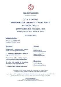 In particolare, oltre a far luce sui principi di indipendenza e obiettività del revisore, lo scetticismo professionale quale obbligo di legge e la preparazione della revisione legale, nel corso del convegno si proverà a far luce anche sull’opportunità e il rapporto rischi/benefici che la norma contiene per i nuovi professionisti chiamati a ricoprire i nuovi incarichi.