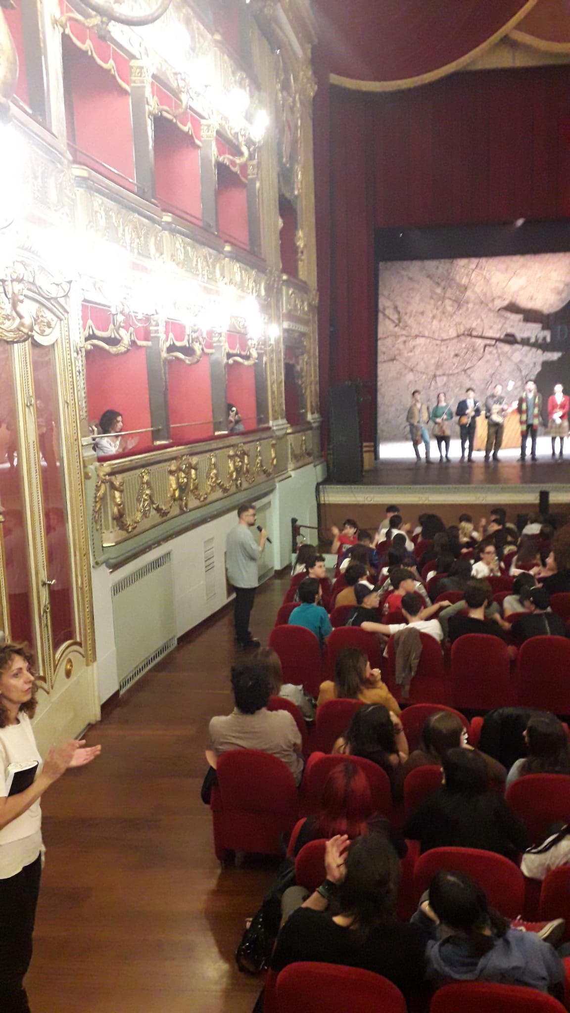 Pubblico spesso rumoroso nei teatri dei tentativi di teatro-scuola, durante questo spettacolo ha invece partecipato coinvolto e attento, a volte cantando con gli attori musici, a volte continuando a farlo per strada all’uscita dal teatro. Entusiasmo contagioso quello di chi dal 2019, in piena pandemia, ha deciso di realizzare un sogno e di metterlo in scena per contagiare Amore per l’umanità a volte persa, in nome dell’arte e della musica, a ritmo di cuori.