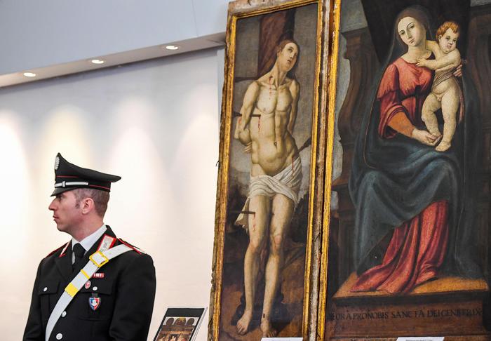 Un bottino accumulato in 20 anni di furti messi a segno un po’ in tutta Italia e per il quale sono state denunciate tre persone. In particolare le pale, risalenti al ‘600 e ‘700, erano state trafugate prima del dicembre 2012 da San Nicola a Capestrano e San Giacomo Apostolo a Scoppito, due chiese dell’aquilano martoriate dal terremoto e non ancora riaperte al pubblico. Il Cristo di Reni era stato rubato, invece, ad una famiglia nobiliare napoletana. (ANSA)
