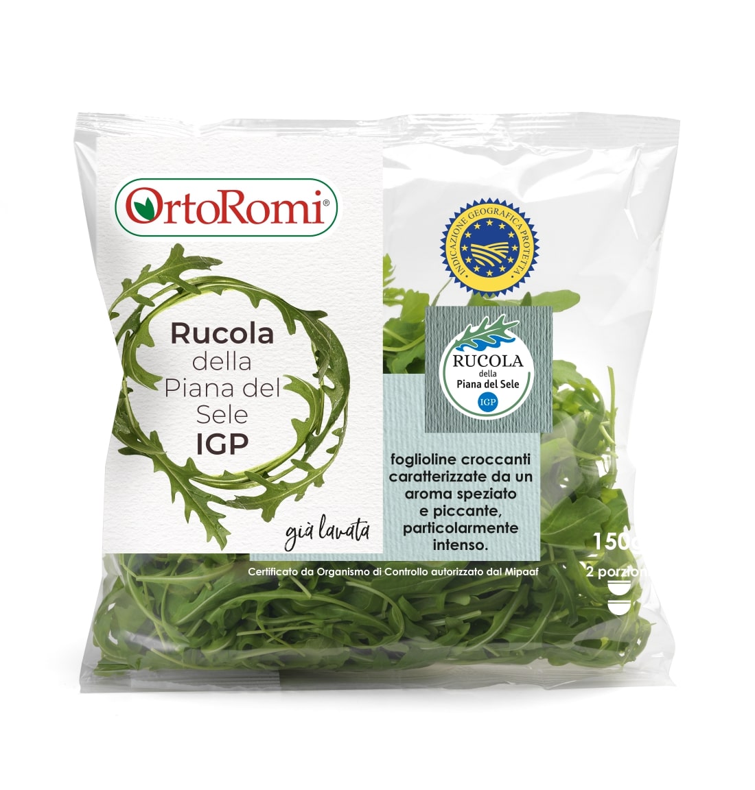 La Rucola della Piana del Sele IGP è un prodotto di IV gamma di alta qualità, già lavato e pronto al consumo. Per potersi fregiare del marchio IGP, la Rucola OrtoRomi viene prodotta seguendo il disciplinare del neonato Consorzio di Tutela della Rucola della Piana del Sele IGP. La sua qualità è controllata e garantita: viene infatti coltivata dalle aziende agricole socie di OrtoRomi, nei dintorni di Bellizzi (SA), un’area geografica estremamente fertile, specificamente vocata alla coltivazione della rucola per le particolari caratteristiche del suolo, di origine vulcanico-alluvionale, e climatiche.