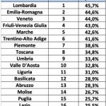 Fra le province, la più puntuale ancora una volta è Brescia, seguita da Sondrio, Bergamo, Lecco e Reggio-Emilia; all’ultimo posto troviamo Trapani, preceduta da Reggio Calabria, Palermo, Crotone e Messina.