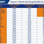 L’incremento dei ritardi gravi rispetto alla fine del 2019 è particolarmente evidente soprattutto in Valle d’Aosta (+47,9%), Trentino-Alto Adige (+41,2%), Friuli-Venezia Giulia (+40,3%), Veneto (+37,3%) e Liguria (+36,7%), mentre a livello provinciale le più colpite sono Imperia (+76,6%), Belluno (+70,8%), Asti (+60%), Sondrio (+58,5%) e Trento (+54,3%).