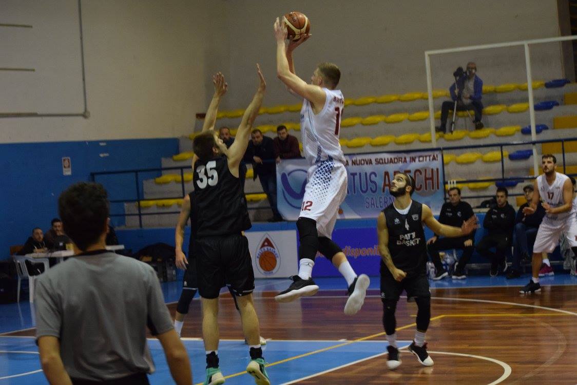 La Virtus Arechi Salerno ingrana la quinta. La squadra del presidente Nello Renzullo nel secondo impegno casalingo consecutivo regola anche la pratica Playa Hotel Patti Basket, non senza difficoltà. Davanti a circa 500 persone intervenute al PalaSilvestri pure in questa circostanza, il roster allestito dal diesse Pino Corvo soffre la verve dei viaggianti in avvio del match valido per la 9^ giornata del campionato di Serie B Old Wild West. Col passare dei minuti, però, coach Antonio Paternoster registra la difesa e anche l’attacco ne trae giovamento, le percentuali di realizzazione crescono vertiginosamente e la squadra di casa allunga fino al +16 finale (82-66). Capitan Marco Cucco e compagni portano a casa la quinta vittoria consecutiva e restano nel gruppetto delle inseguitrici a due sole lunghezze di distacco dalla vetta.