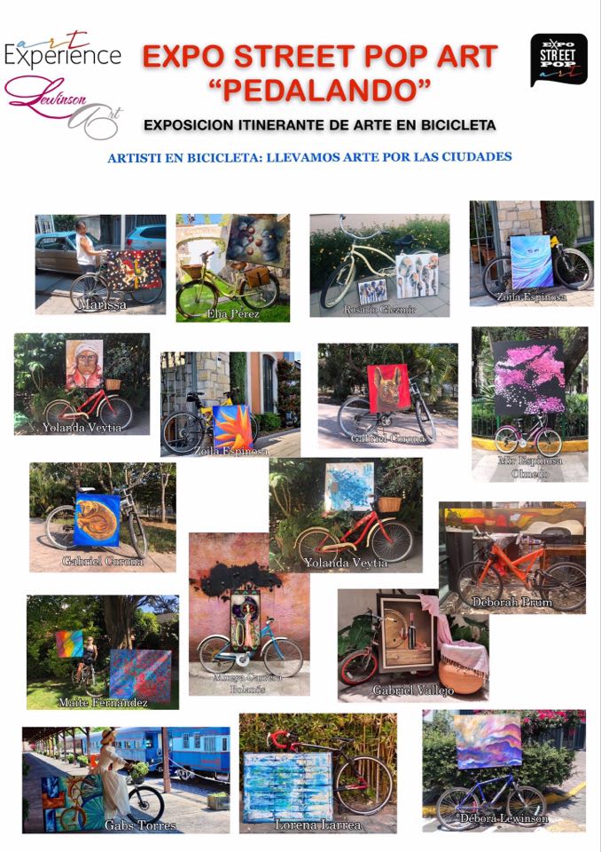 Lewinson Art aderisce all’iniziativa di Art Experience a Salerno, in Italia, per organizzare la mostra prima virtuale e poi fisica “Pedalando”, che consiste nel fotografare le opere montate su biciclette, poiché è un mezzo di trasporto ecologico . La Messicana Lewinson Debora, oltre ad essere una bravissima artista ,è anche una curatrice di eventi eccezionali, dal lontano Messico ci fa sentire tutto il calore umano della condivisione, è sensibile ,generosa, mai indifferente, infatti riuscirà ad organizzare a Città del Messico il primo evento EXPO STREET POP ART PEDALANDO internazionale, sia nella versione virtuale ( con artisti che è riuscita a coinvolgere) sia nella realtà probabilmente la realizzerà prima della expo di Salerno.