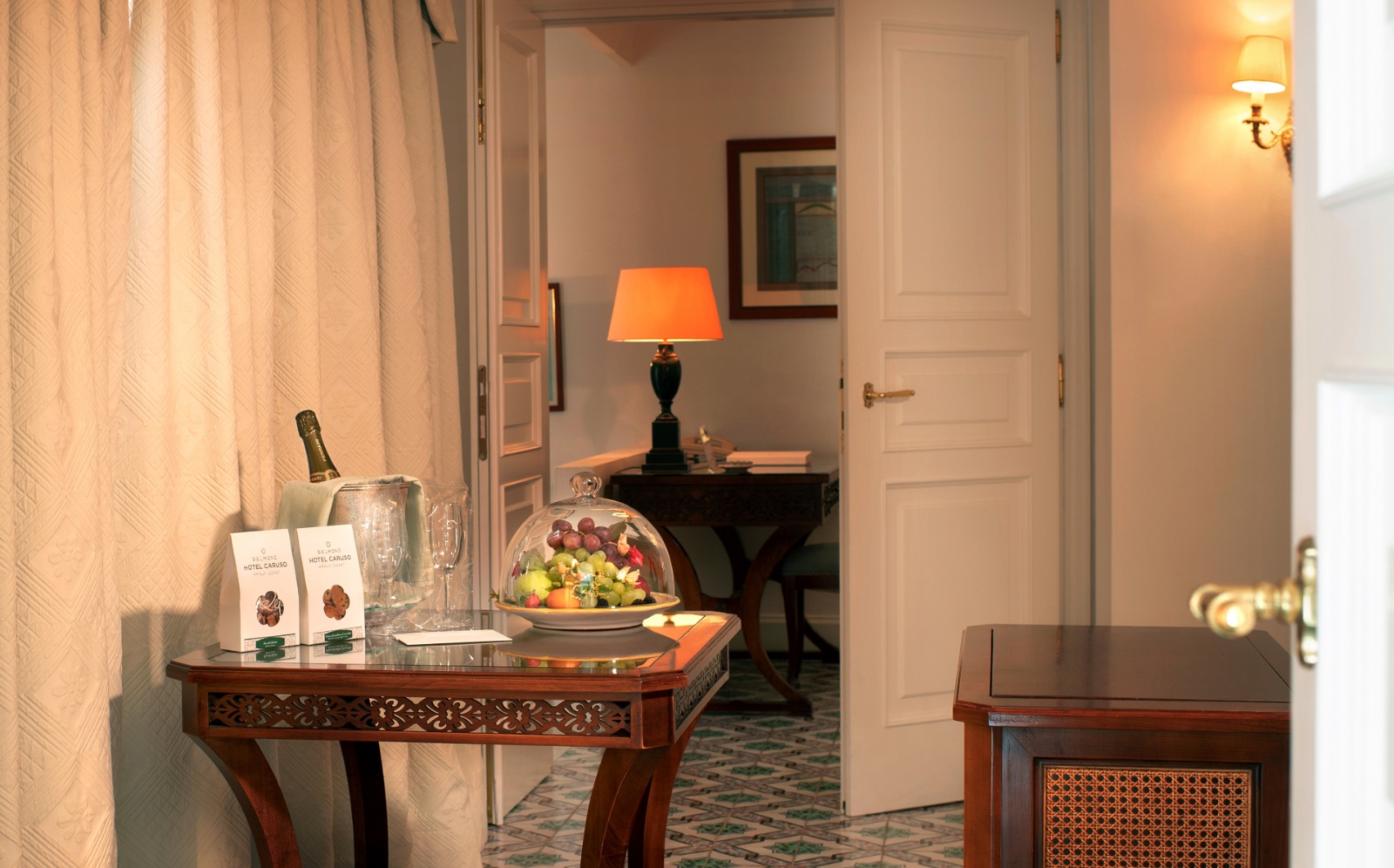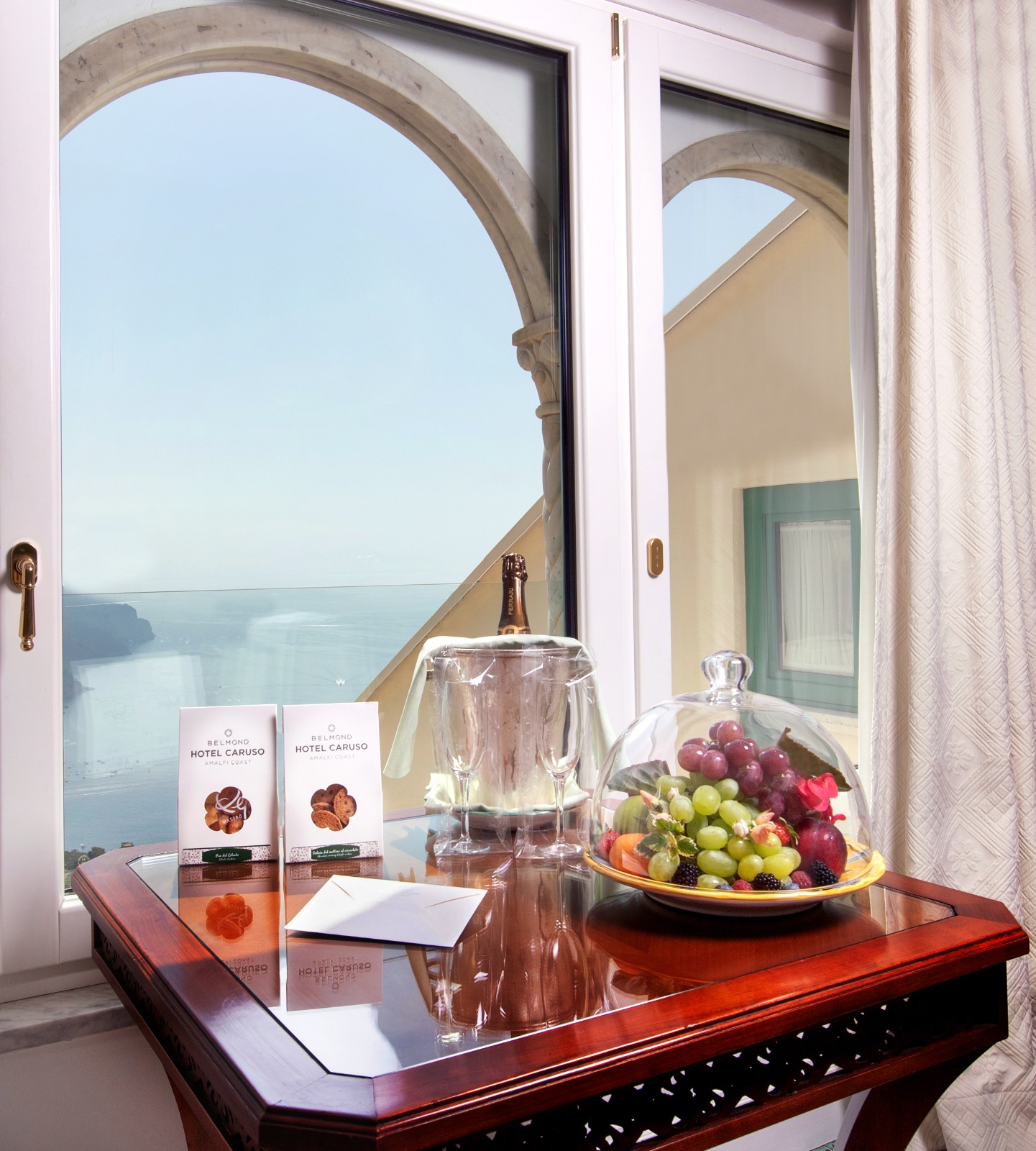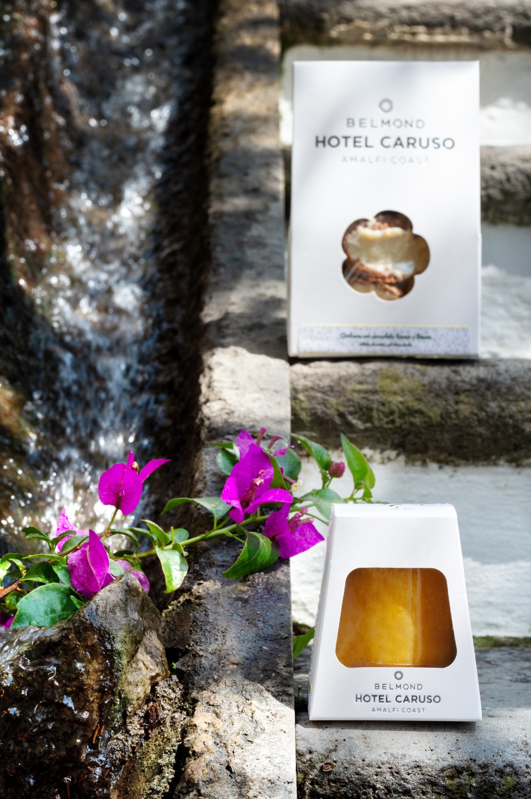 Il Belmond Hotel Caruso è universalmente riconosciuto come un polo di eccellenza dell’ospitalità ad altissimo livello in Costiera Amalfitana, e la linea di amenities firmata da Pepe Mastro Dolciere in esclusiva per il Belmond Hotel Caruso, esprime la quintessenza dell’arte pasticcera italiana. E’ composta sia da amenities per il minibar che per il welcome in camera: i babà in vasocottura da 80gr al rhum e al limoncello, le cortecce alle mandorle con cioccolato bianco aromatizzato al limone e all’arancia, sono disponibili nel minibar; mentre il biscotto “Pan del Cilento”, realizzato con pinoli e fichi bianchi proveniente dal Parco Nazionale del Cilento e Vallo di Diano, ed il biscotto “Delizia del mattino”, realizzato con finissimo cioccolato al latte, sono disponibili per il benvenuto.