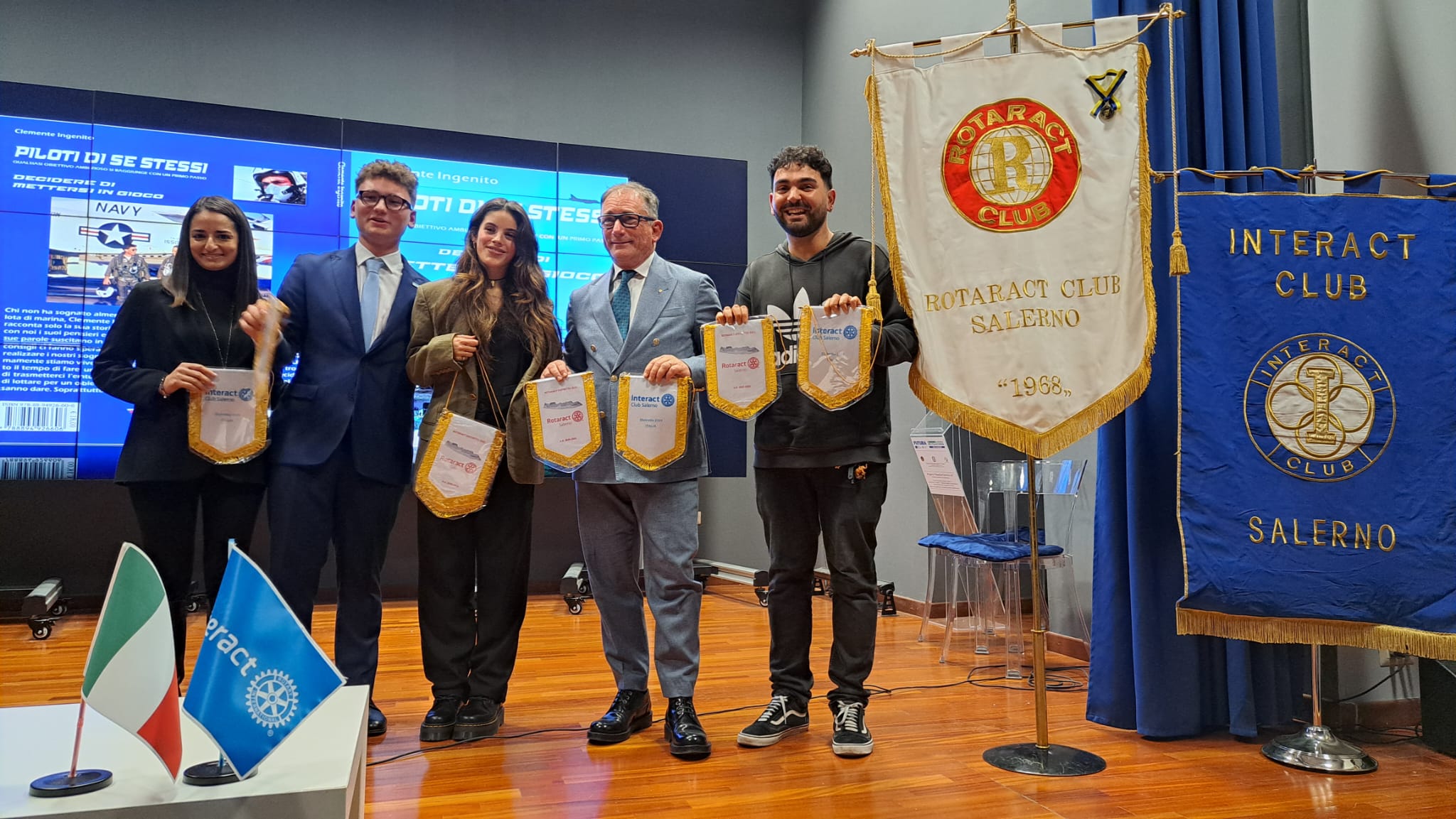 “Vivi per realizzare i tuoi sogni e non aspettare il giorno in cui dovrai sognare per viverli!”. Con questo importante consiglio ha concluso il suo intervento il Comandante Clemente Ingenito, il primo pilota italiano ad atterrare con un jet su una portaerei americana, la USS John F. Kennedy, che, insieme alla ballerina di “Amici” Gaia De Martino, ha spiegato come diventare “Piloti di sé stessi” durante l’incontro organizzato nell’auditorium del “Convitto Nazionale Torquato Tasso”, diretto dal Rettore Claudio Naddeo, dall’Interact Club Salerno, presieduto da giovanissimo Clemente Ingenito, in collaborazione con il “Rotaract Club Salerno”, presieduto dalla professoressa Roberta Palumbo e con l’associazione “Limen”, presieduta da Gianni Fiorito. L’ex pilota della Marina Militare Italiana, oggi pilota civile di Airbus, ha raccontato la sua storia:” Sono nato nella periferia romana. Ho sempre sognato di fare il pilota: chi non ha sognato almeno una volta nella vita di essere un pilota di caccia? Però nessuno mi dava fiducia, nessuno mi incoraggiava. È stata per me una sfida diventarlo e a 17 anni sono entrato nella Marina Militare Italiana. Bisogna accettare le sfide: affrontare i momenti difficili. Anche i fallimenti sono importanti: diventano lezioni, ti fortificano. Se vuoi scrivere la tua storia devi prima conoscere te stesso, i tuoi limiti, le tue paure, per poterle superare. È anche importante conoscere la propria forza. Il successo è un viaggio, non una destinazione finale. Il percorso non è mai lineare, ma ogni ostacolo è crescita”. Il Comandante Ingenito, di origini salernitane, ha spiegato che bisogna sempre puntare con tenacia all’eccellenza:” Nella vita come in volo la mediocrità è pericolosa. Circondati di persone migliori di te, non smettere mai di crescere. Bisogna imparare dai migliori: ascoltare chi ha percorso la strada prima di te. È importante la disciplina, il rispetto delle regole, la puntualità, la preparazione costante che è fondamentale: non si improvvisa mai.  Bisogna investire in sé stessi: è importante lo studio, la pratica, l’apprendimento continuo. Ogni ora investita oggi è un vantaggio domani. È importante anche il lavoro di squadra. Una volta raggiunti i tuoi obiettivi bisogna diventare guide per gli altri”. Il Professore Ingenito, autore del libro “Piloti di sé stessi”, è anche un rotariano:” Sono il Responsabile dello Scambio Giovani del “Distretto Rotary 2072” che raggruppa i Rotary Club dell’Emilia-Romagna e della Repubblica di San Marino”. La ballerina ventiquattrenne Gaia De Martino, nata a Castellammare di Stabia, concorrente della 23esima edizione del talent di Canale 5 “Amici di Maria De Filippi”, sezione ballo, ha raccontato di come ha vissuto la sua esperienza nel programma di Maria De Filippi e sottolineato l’importanza di credere fortemente nelle cose che facciamo:” È importante metterci il cuore: solo in questo modo riusciremo a superare le difficoltà che incontriamo. Sono fortunata perché vedo sempre il bello delle persone con le quali mi rapporto. Sono nata con questo talento: quello di avere una predisposizione naturale per la danza, ma sicuramente è stata la mia determinazione a farmi raggiungere questi traguardi per me importanti. Dopo quattro anni sono riuscita ad entrare nel programma di Maria De Filippi che mi ha permesso di superare i miei limiti, le mie insicurezze, la mia timidezza.  Sono stata per otto mesi nel programma fino a quando purtroppo ho avuto un infortunio al ginocchio: è stato un bruttissimo momento che però ho affrontato in maniera positiva. Ho vissuto emozioni vere, forti.  Bisogna essere empatici verso gli altri”. Gaia in questo sta preparando, a Napoli, uno spettacolo teatrale con Sal Da Vinci:” Stiamo vivendo giornate intensissime di lavoro: siamo tanto stanchi, ma felici anche perché stiamo insieme a tanti altri amici. Ci aiutiamo a vicenda: è importante chiedere aiuto agli altri, ma soprattutto è importante anche ascoltare l’aiuto degli altri. Ogni giorno puoi aggiungere un tassello nella tua vita che ti fa diventare una persona migliore”.  Il Presidente dell’Interact Salerno Clemente Ingenito ha spiegato che la serata è nata dal desiderio di creare uno spazio autentico di ascolto, confronto e crescita:” Un invito a guardarsi dentro, a riconoscere la propria forza e a ripartire con maggiore consapevolezza. Perché il viaggio più importante è quello che facciamo con noi stessi”.  La presidente del “Rotaract Club Salerno”, Roberta Palumbo, ha sottolineato l’importanza di imparare a conoscere sé stessi:” Nella vita ci sono tante difficoltà ed è importante capire come orientarsi. È importante soprattutto fare rete, creare delle connessioni. Tutto ciò che facciamo ci aiuta a crescere”. Il presidente dell’Associazione Limen, Gianni Fiorito, ha ricordato che da anni l’associazione Limen collabora con i Club Rotaract e Interact:” Oltre a valorizzare il territorio e il capitale umano presente nella nostra città, ci interessa fare rete con i giovani con i quali instaurare un meccanismo di solidarietà generazionale e fare in modo che restino e vivano bene a Salerno dove devono poter arricchirsi culturalmente e socialmente. Ragazzi sognate e non abbiate paura di sbagliare e di mettervi in gioco”. Presente la Segretaria Distrettuale del Rotaract, Valentina Palumbo, e la  Delegata Rotary per il Rotaract e l’Interact del “Rotary Club Salerno”, l’ingegnere Anna Gallo. (Foto di Lorenzo Giordano).