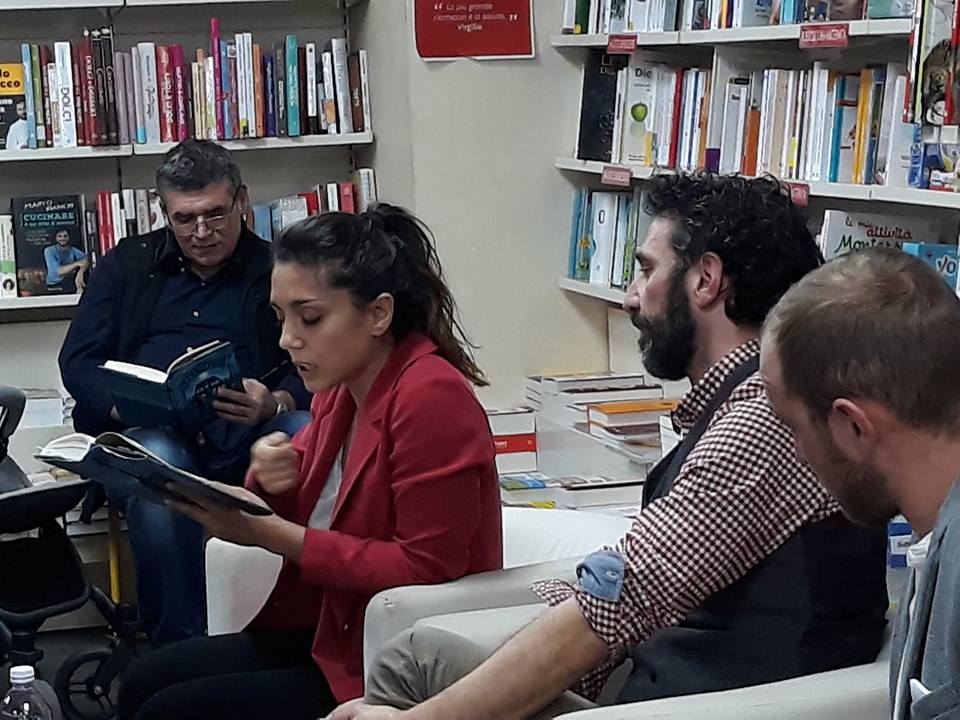“Un libro non ha un target preciso – ci ha detto in coda a questa serata trascorsa in libreria – anche una signora di 91 anni lo sta leggendo insieme alla nipote e aspetta di leggere gli altri “.Un modo di allungarsi la vita leggendo , ma anche di riempirla in modo sano e utile. I libri non hanno età ma passione , quella che ci accompagna sempre se qualcuno da bambini ci leggeva un libro, ci raccontava una storia e ci ha contagiato in questa magia dell’ascolto.