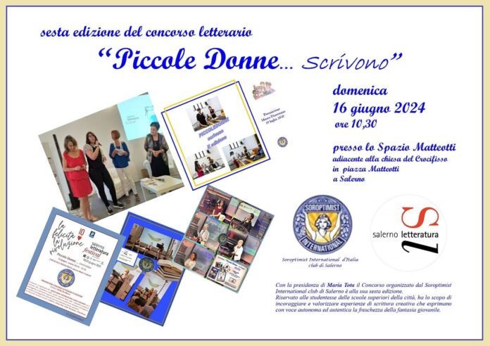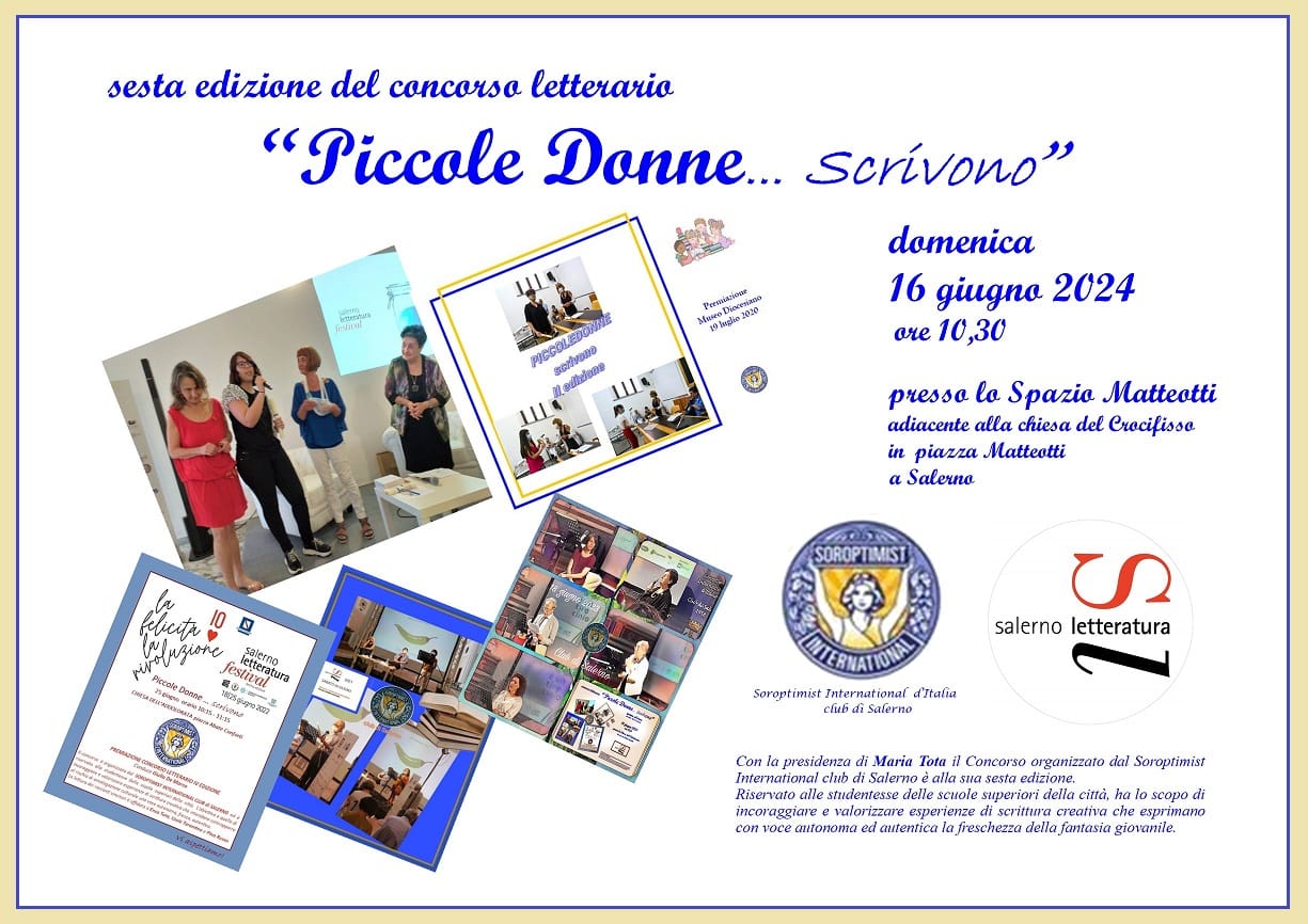 Il concorso Piccole donne scrivono, destinato alle studentesse delle scuole superiori della città di Salerno, mira a incoraggiare e valorizzare esperienze di scrittura creativa di giovani donne, che intendano contrapporre al rischio dilagante di omologazione culturale una voce autonoma, fresca, autentica.