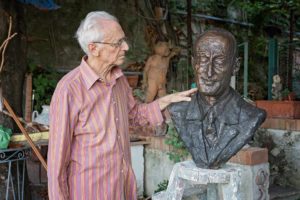 Non si può non rimanere incantati davanti alle opere del dottor Pier Francesco Mastroberti, il medico – artista salernitano che ha realizzato innumerevoli opere d’arte nella nostra città e moltissime altre, di grandi dimensioni, come la “Fontana di Bacco e Arianna” e il “Monumento ai caduti” nel paese della sua fanciullezza: Sant’Angelo le Fratte, in provincia di Potenza:” Sono nato a Satriano di Lucania , un paese vicino , ma da bambino ho vissuto a Sant’Angelo le Fratte , il paese di mio padre che faceva il medico condotto “. In quell’antico borgo il dottor Mastroberti, all’età di 11 anni, nel periodo postbellico, ha iniziato a lavorare la creta:” Realizzavo i pastorelli del presepe con la creta che riuscivo a prendere da quella raccolta dalle tante rondini che volavano alte verso le rocce della montagna; proprio in uno dei tanti buchi che c’erano tra le rocce scoprii dove le rondini conservavano la creta che utilizzavano, insieme a delle pagliuzze, per fare i nidi”. A Sant’Angelo le Fratte Mastroberti ha imparato l’arte del disegno e della scultura: “Poi con la mia famiglia ci trasferimmo a Eboli, dove frequentai le scuole medie: ricordo che fui rimandato proprio in Disegno; all’esame di riparazione di ottobre il professore mi promosse con otto”. Successivamente i genitori si trasferirono a Salerno:” Mi iscrissero al Liceo Tasso. Mi piaceva molto disegnare: sul giornale di classe “Il Loggione” facevo anche le caricature ai professori, qualcuno si arrabbiava. Poi mi iscrissi alla Facoltà di Medicina all’Università Federico II di Napoli e subito dopo la laurea mi chiamarono dal Comune di Sant’Angelo le Fratte per chiedermi di sostituire mio padre, che era morto il mese prima che io mi laureassi, e per quattro anni feci il medico condotto del paese”. Specialista in Anestesia e Rianimazione, per anni il dottor Mastroberti ha lavorato all’Ospedale Ruggi di Salerno:” Quando tornai a Salerno aprii un laboratorio di analisi con il dottor Antonio Borsellino e poi cominciai a lavorare al Reparto di Chirurgia Interna dell’Ospedale di Salerno. Nel frattempo continuavo a dipingere e a realizzare delle sculture in creta che però non rubavo più alle rondini, ma compravo in blocchi in un negozio”. La passione per i presepi gli è rimasta: ” Ho realizzato dei presepi in gesso e garza con l’anima di ferro e legno, che ho esposto a Parigi, a Matera, al Maschio Angioino a Napoli e al Duomo di Salerno”.