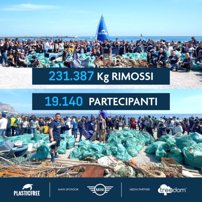 La Campania liberata da 21.856 chilogrammi di plastica e rifiuti dispersi nell’ambiente in un solo weekend. È l’eccezionale risultato raggiunto da Plastic Free Onlus, l’organizzazione di volontariato impegnata dal 2019 nel contrastare l’inquinamento da plastica, nei 66 appuntamenti di pulizia ambientale tenutisi in contemporanea sabato e domenica per celebrare la “Giornata Mondiale della Terra”.