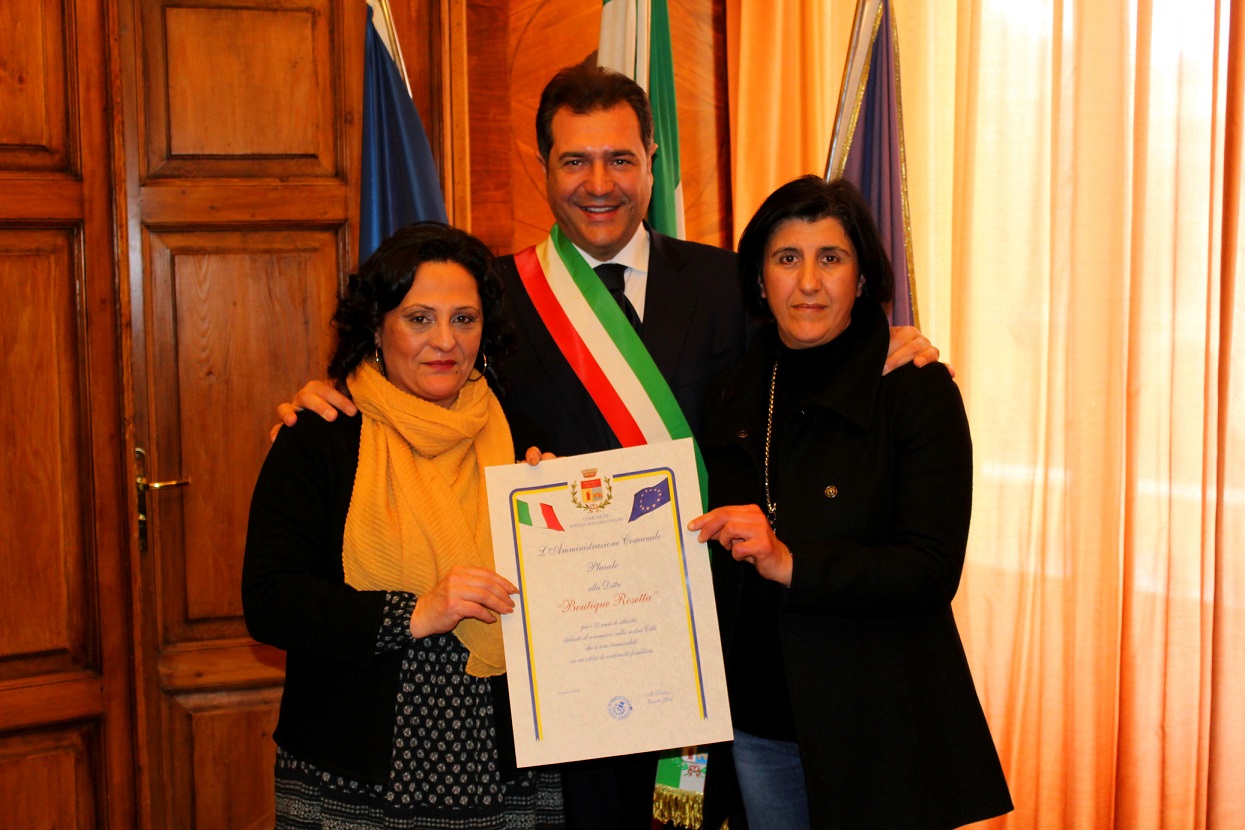 “Alla Ditta ‘Boutique Rosetta’ per i 53 anni di attività dedicati al commercio nella nostra Città che si sono tramandati in un’ottica di continuità familiare”;