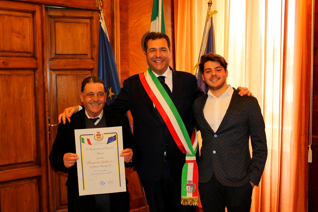 “Alla Ditta ‘Ferramenta Galella snc’ di Gaetano Adinolfi & C. per i 54 anni di attività dedicati al commercio nella nostra Città”;