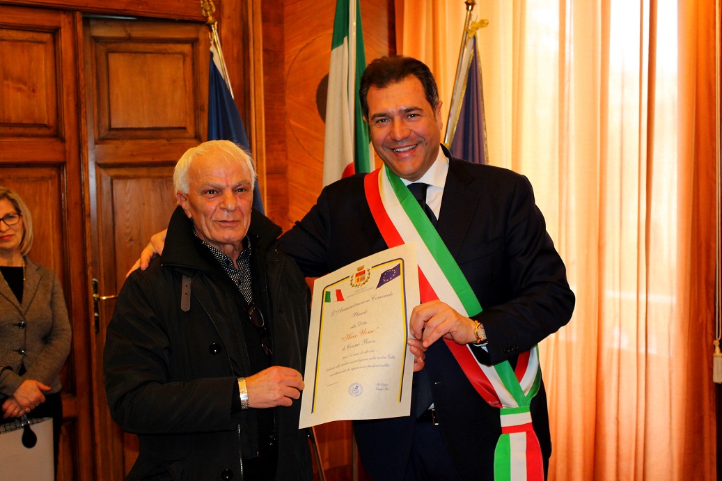 “Alla Ditta ‘Hair Uomo’ di Cosimo Bacco per i 44 anni di attività dedicati alla tradizione artigiana nella nostra Città caratterizzati da esperienza e professionalità”;