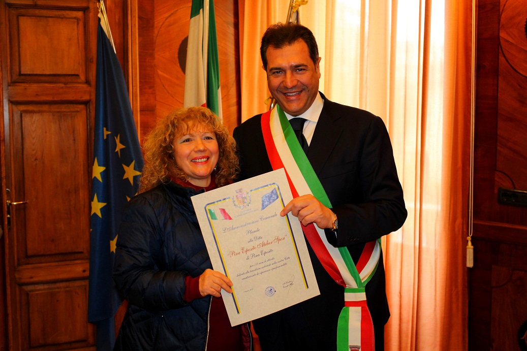 “Alla Ditta ‘Pina Esposito Atelier Sposi’ di Pina Esposito per i 47 anni di attività dedicati alla tradizione sartoriale nella nostra Città caratterizzati da esperienza e professionalità”;