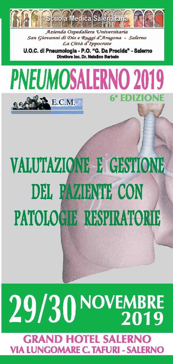 “Valutazione e gestione del paziente con patologie respiratorie”: è questo il tema della due giorni dell’evento PneumoSalerno 2019 che si terrà domani, venerdì 29 novembre e dopodomani, sabato 30 novembre al Grand Hotel Salerno.