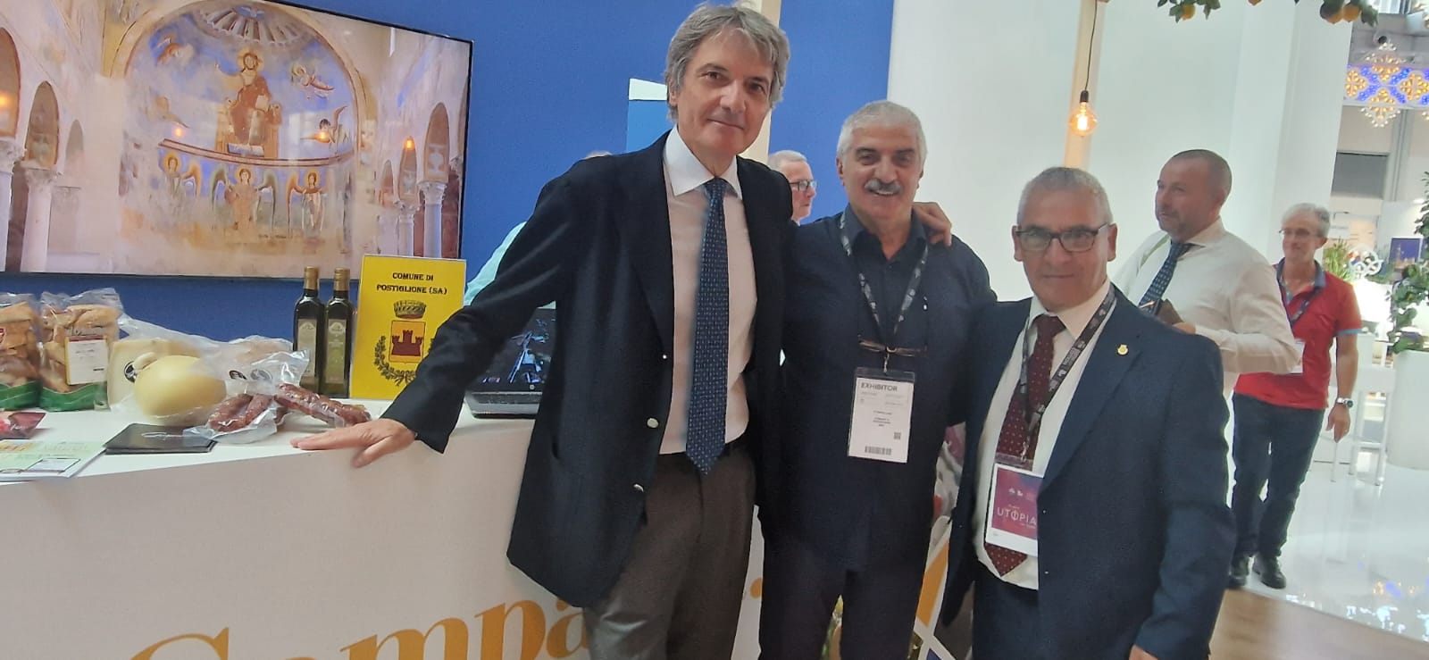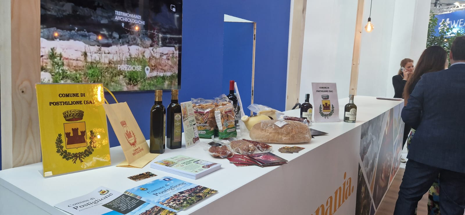 Mostra del turismo e del viaggio internazionale quella di Rimini che si classifica come la vetrina sul mondo del turismo, di cui il Comune di Postiglione, grazie alla sinergia tra l’amministrazione comunale e l’assessorato al turismo della Regione Campania, ne è parte integrante con la presenza nello stand della Regione Campania dove ad accogliere operatori turistici, investitori, aziende, turisti, rappresentati delle Istituzioni da tutto il mondo e curiosi, ci sono il presidente del consiglio comunale, Luigi Di Matteo, e il vicesindaco, Pasquale Caputo, che hanno ricevuto la visita, in fiera, dell’assessore regionale della Campania con delega al turismo, Felice Casucci. Comune, che in fiera ha esposto oltre al materiale informativo e divulgativo sulla cittadina salernitana, anche i prodotti tipici postiglionesi con annessa area di degustazione.