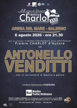 Prosegue la prevendita dei biglietti per assistere alle serate della XXXII edizione del Premio Charlot. Sono pochi i posti ancora disponibili per assistere alle serate di Sanremo (5 agosto) e di Antonello Venditti (6 agosto)e l’organizzazione dello Charlot ci tiene a ricordare che è ancora possibile acquistare i biglietti, al costo di euro 20 più prevendita, attraverso il sito www.go2.it, oppure presso l’Agenzia Milagro di via Diaz a Salerno. Sempre attraverso il sito www.go2.it, oppure presso l’Agenzia Milagro, è possibile acquistare al costo di euro 25 anche i biglietti per lo spettacolo di Vincenzo Salemme, in programma il 26 agosto. Così come attraverso il sito www.vivaticket.it è possibile prenotarsi, al costo di 1 euro, per le serate del 2-3-4-7-8-9 agosto. Si ricorda inoltre che i biglietti si potranno acquistare anche la sera sesta al botteghino dell’Arena del Mare, previa disponibilità.