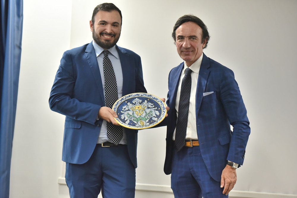 “Sono veramente dispiaciuto di non poter essere lì con voi, soprattutto con questa bella platea di giovani che devono essere molto fieri di vivere in una terra che concentra tante storia e cultura -ha esordito il direttore Schmidt, apparso sullo schermo della sala Maestrale dell’Holiday Inn, anche perché qualche anno fa sono stato a Cava de’ Tirreni per una breve visita, il tempo di un caffè nella vostra bella città”.
