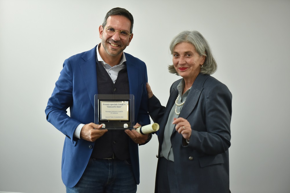Le premiazioni sono proseguite con la consegna del Premio Com&Te di giornalismo “Peppino Muoio” under 35 assegnato a Mario Messina, redattore a TeleAmbiente, dove si occupa di clima, energia e mobilità sostenibile. Nel suo lavoro racconta la transizione verde in corso in Italia e nel mondo con l’obiettivo di comprendere le sfide della crisi climatica e le opportunità che la rivoluzione green può rappresentare per imprese e istituzioni. Da diversi anni collabora con alcune testate svizzere dove racconta le storie di cittadini svizzeri che – oggi come nel passato – hanno lasciato un segno in Italia.