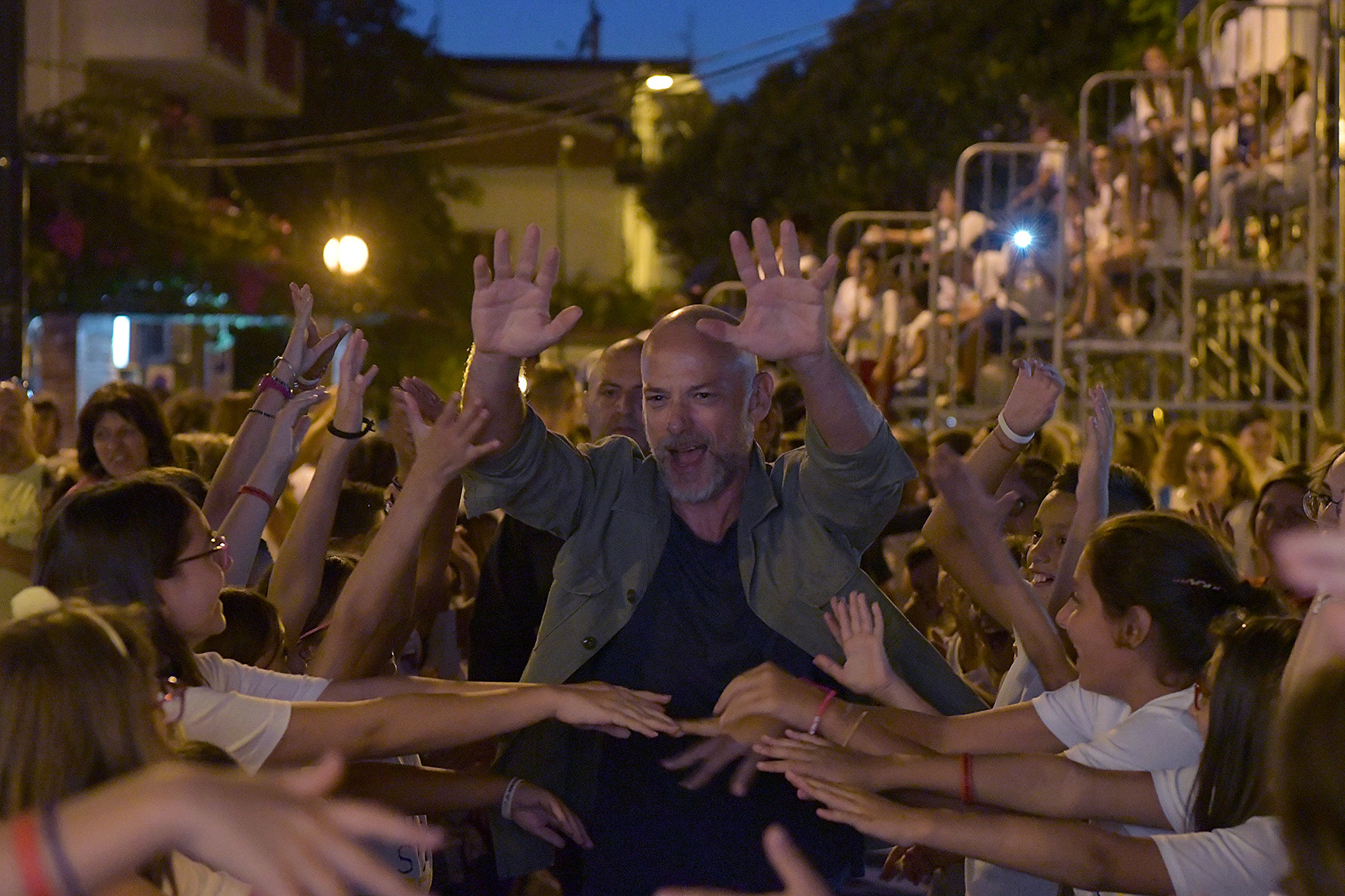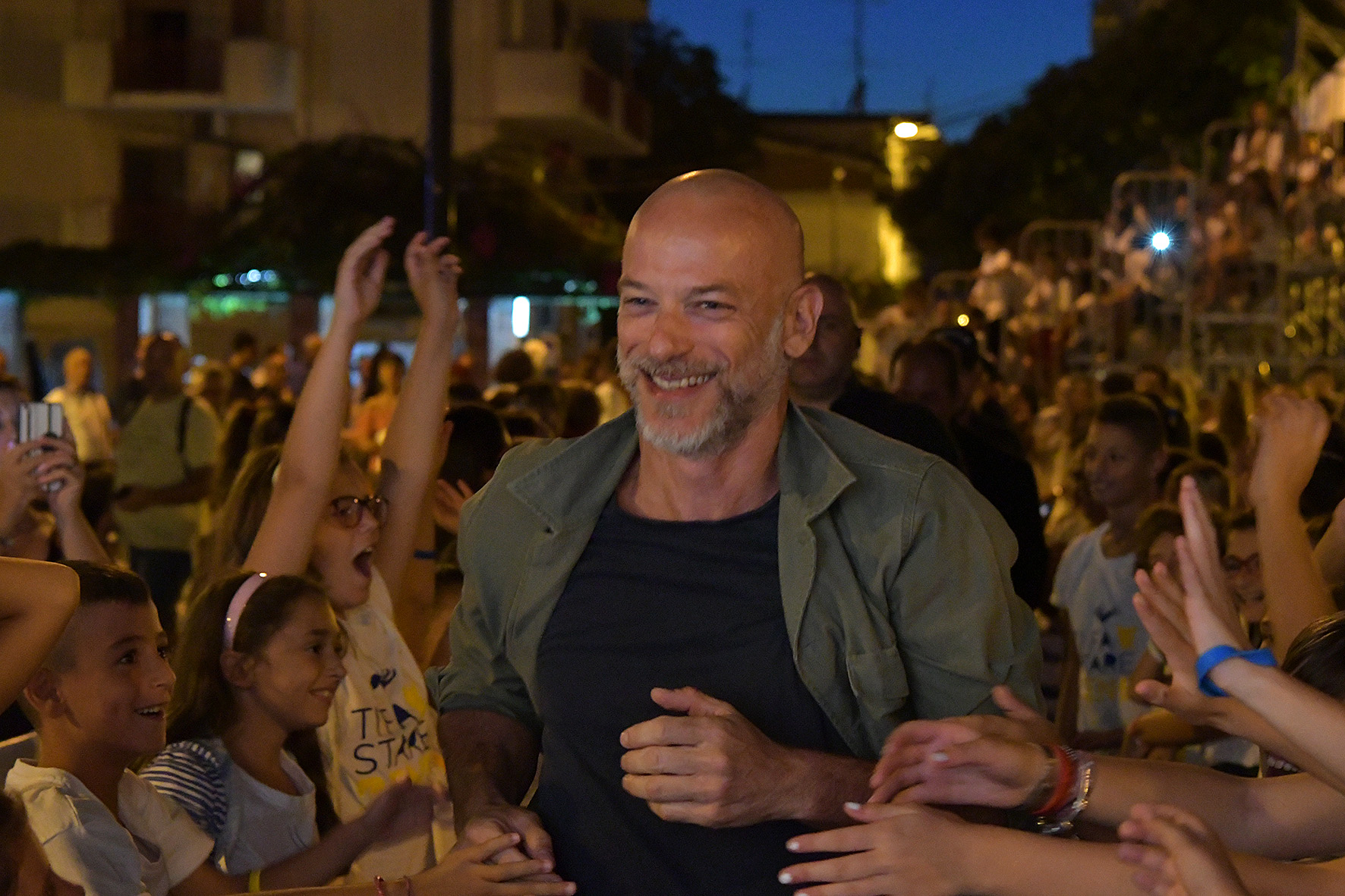 Al Premio Fabula c’è anche il tempo per prendersi un po’ in giro. Classe 1970, l’ospite confessa alla piazza di Bellizzi di essersi rasato a 23 anni e di non aver più “controllato”, da allora, la ricrescita dei suoi capelli. «Per quanto sia sempre affascinante vestire i panni di una persona che non sei tu, ho chiesto più volte ai registi con i quali ho lavorato di poter indossare una parrucca. Quasi mai hanno accolto la mia richiesta».