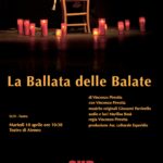 Domani martedì 10 aprile, alle ore 10.30 in Teatro di Ateneo, si terrà il primo appuntamento della Rassegna: lo spettacolo “La Ballata delle Balate”, un’intensa pièce teatrale recitata tutta d’un fiato dal drammaturgo Vincenzo Pirrotta, un cunto in prosa e in versi, un’elegia sulla Sicilia che rinnova il legame viscerale dell’artista con la sua isola, dipinta con tinte arcaiche e popolari e con il chiaroscuro inconfondibile di ombre e di luci.