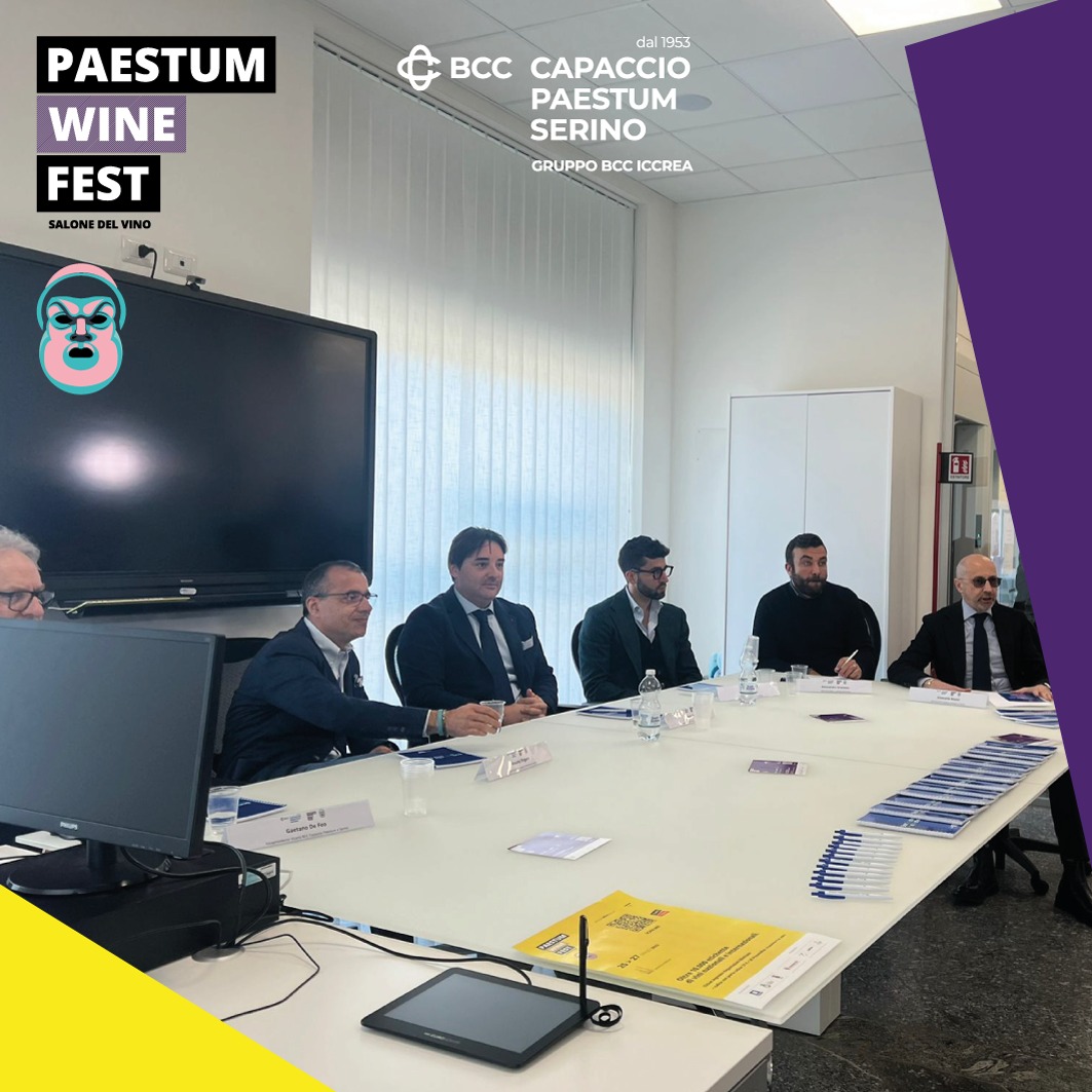 Presentata presso la Filiale di Avellino BCC Capaccio Paestum e Serino in Via Guido Dorso 6 la XI edizione di PAESTUM WINE FEST, il salone del vino del sud Italia che si terrà a Paestum Capaccio (SA) dal 25 al 27 marzo 2023.