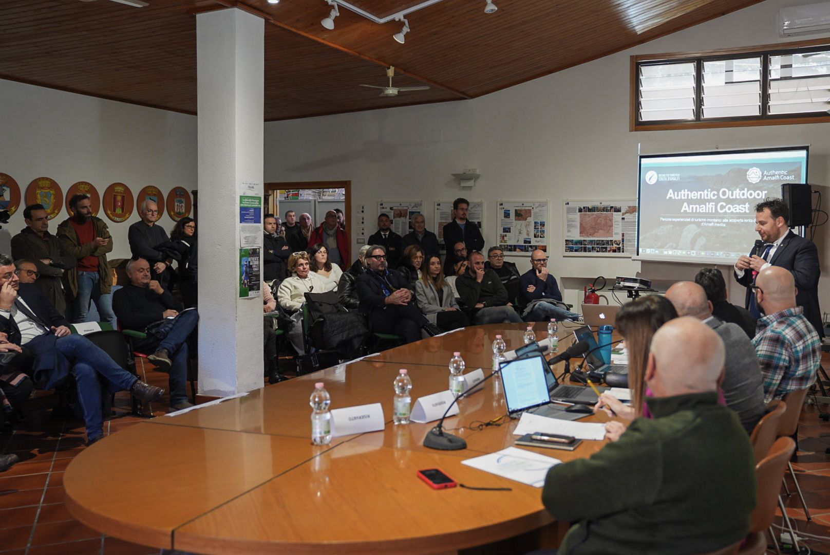 Interesse ed entusiasmo per il nuovo approccio al turismo montano e naturalistico in Costa d’Amalfi, illustrato alla presentazione alla comunità locale del progetto Authentic Outdoor Amalfi Coast della rete Sviluppo Turistico Costa d’Amalfi, tenutasi nella giornata di ieri giovedì 12 dicembre 2024 presso la sede della Comunità Montana Monti Lattari a Tramonti.