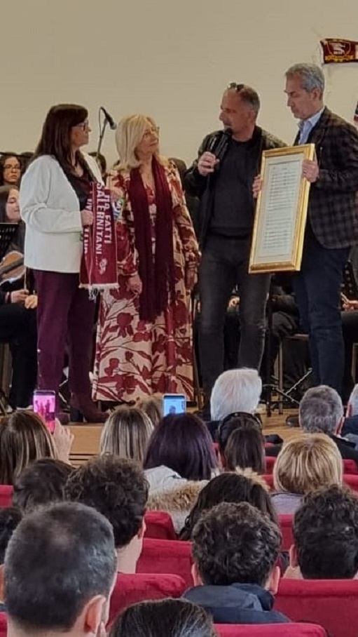 Platea gremita di alunni, tifosi, docenti, una fitta delegazione parlamentare, tra cui i deputati Antonio D’Alessio, Franco Mari e Andrea De Simone, consiglieri comunali e autorità hanno applaudito più volte l’esibizione: «Salernitana, compagna della vita, fedele amore di una storia infinita…Grazie…Vinci» recita una parte del brano eseguito per ben tre volte, lasciando a ogni replica, un brivido di emozione, sintomo di appartenenza alla squadra granata ma anche alla città.