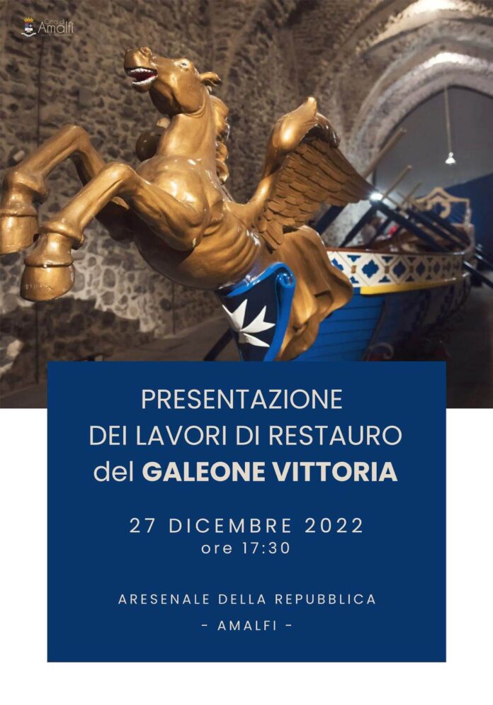È uno degli appuntamenti più esclusivi del cartellone natalizio di Amalfi. Un momento fortemente celebrativo della storia della Repubblica Marinara di Amalfi. Sarà presentato mercoledì 27 dicembre, alle ore 17.30, il lungo e sapiente lavoro di restauro del Galeone “Vittoria”, conservato all’interno dell’Antico Arsenale della Repubblica, che custodisce anche il Museo della Bussola e del Ducato Marinaro..
