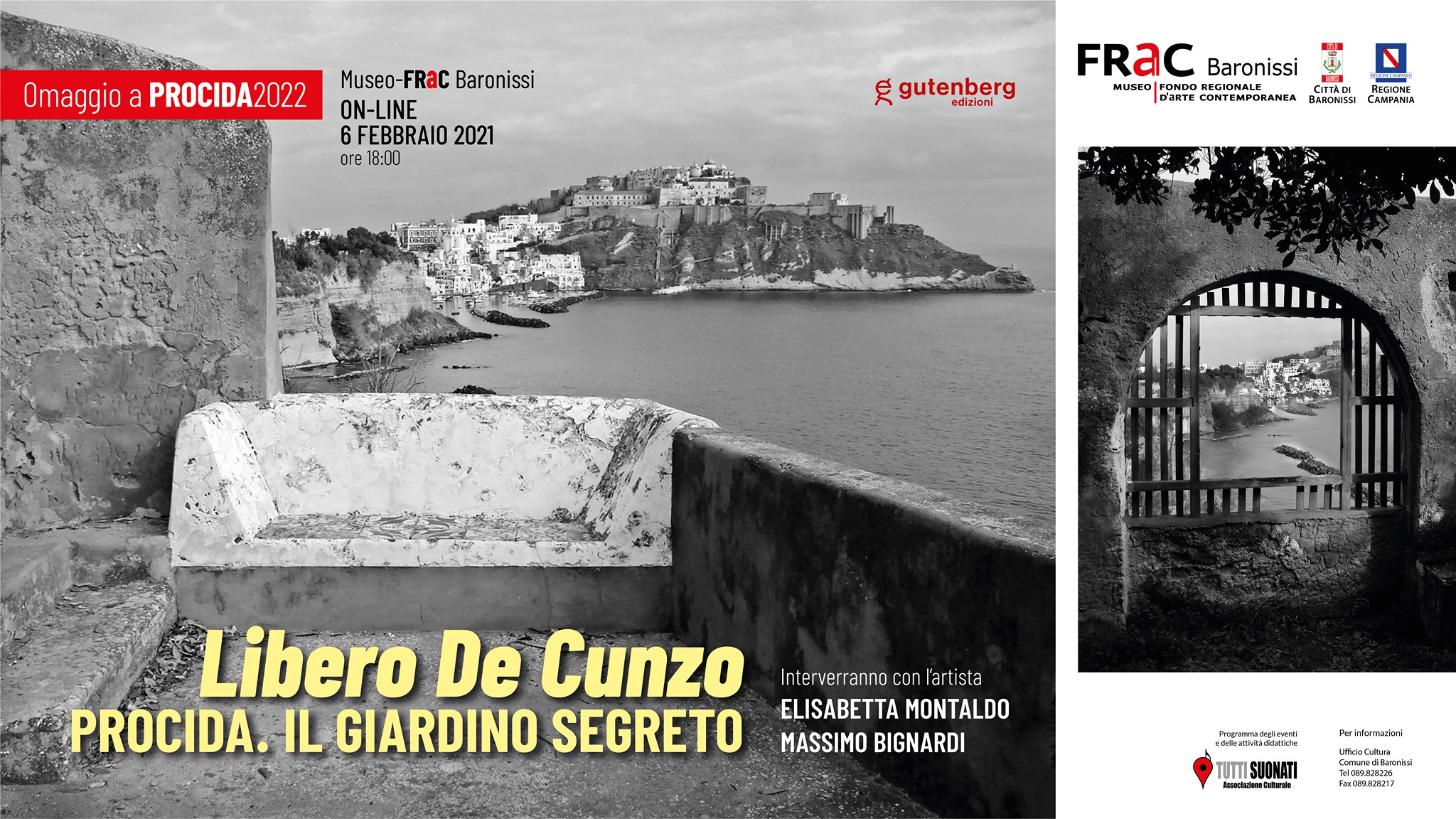 Sabato 6 febbraio dicembre alle ore 18:00, apre al pubblico, in modalità online sui canali digitali del Museo FRaC (Facebook https://www.facebook.com/FRaCBaronissi – Instagram @MuseoFRaC), la mostra PROCIDA. IL GIARDINO SEGRETO di Libero De Cunzo.