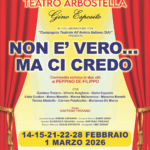 Sotto la direzione di Gaetano Troiano, docente dei laboratori teatrali dell’Arbostella, la compagnia si sta cimentando con uno dei capolavori intramontabili del teatro partenopeo: “Non è vero… ma ci credo” di Peppino De Filippo, testo fortemente voluto dalla direzione artistica curata da Arturo Esposito e Imma Caracciuolo.