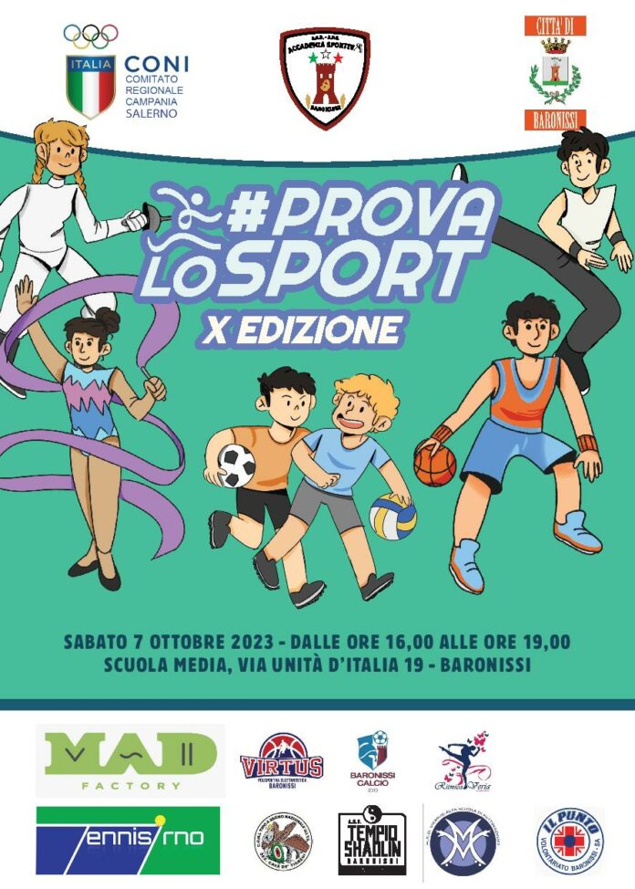 Si terrà a BARONISSI sabato 7 ottobre, presso la palestra della Scuola Media e spazi adiacenti – via Unità d’Italia n.19, dalle ore 16 alle ore 19, la decima edizione di “#PROVALOSPORT“, manifestazione organizzata dalla A.S.D. ACCADEMIA SPORTIVA SALERNITANA, patrocinata dal CONI Salerno e dal Comune di Baronissi.