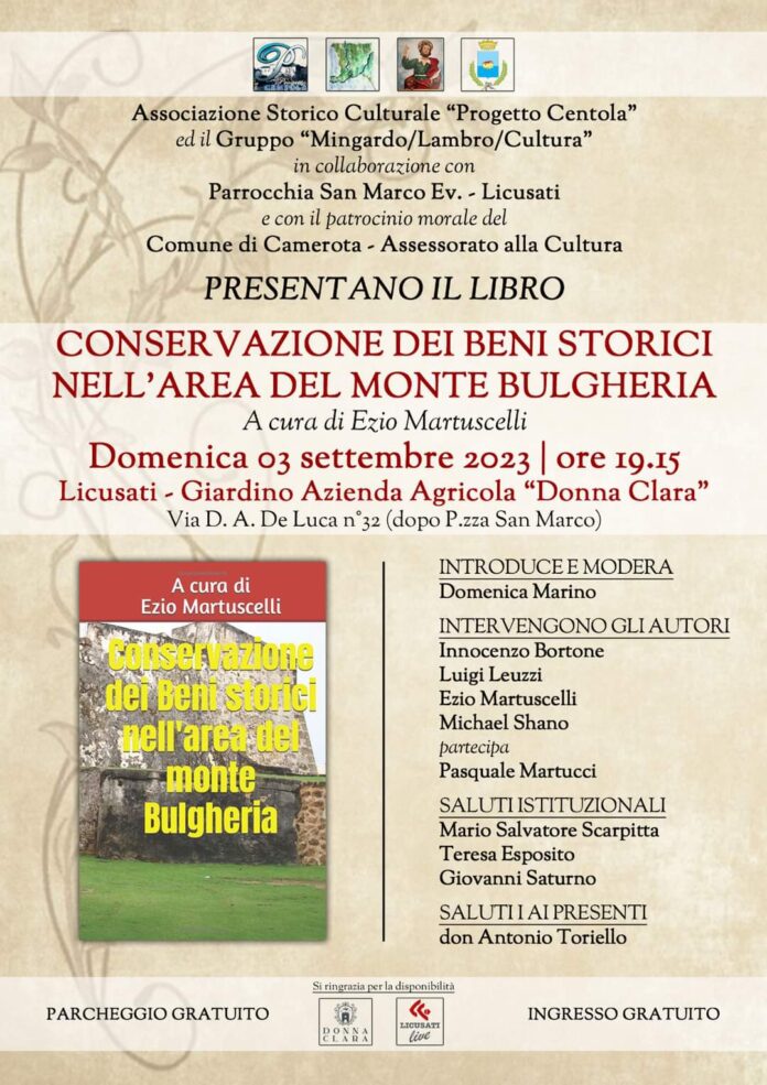 A distanza di un anno i lavori di quel Convegno sono stati pubblicati nel volume, curato da Ezio Martuscelli, dal titolo: “Conservazione dei beni storici nell’area del monte Bulgheria”, che sarà presentato a Licusati il 3 settembre 2023, ed intorno al quale un dibattito cercherà di porre all’attenzione del pubblico la necessità della valorizzazione di risorse che segnano irrimediabilmente una zona di grande interesse.