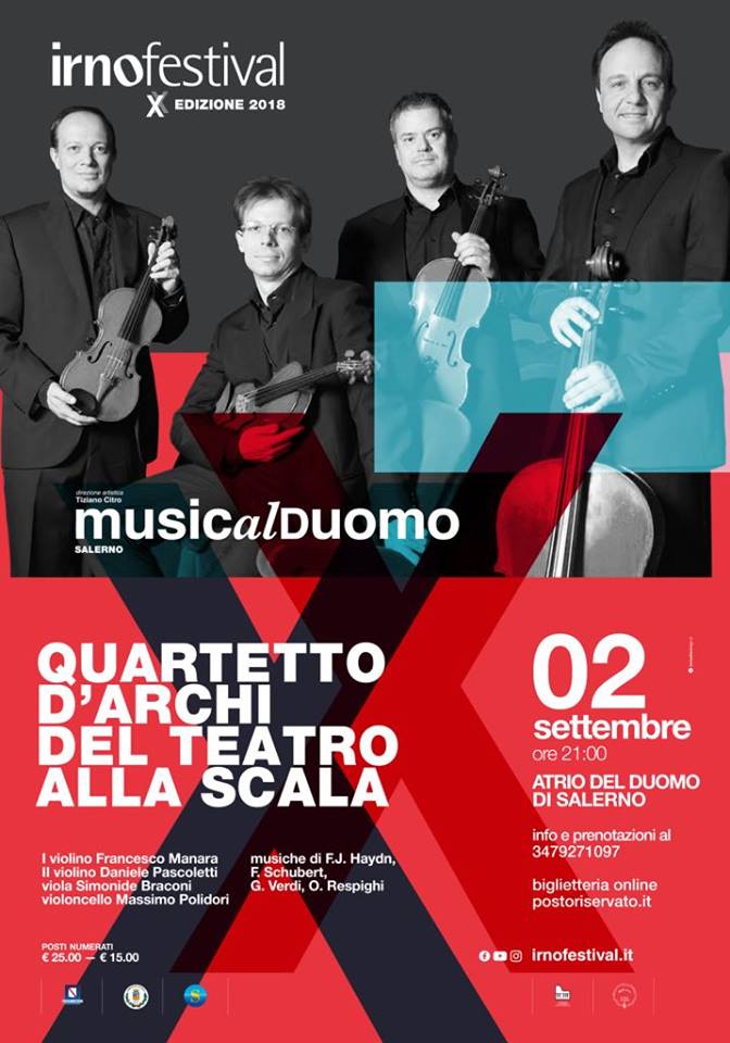 E’ un quartetto d’archi storico, riportato a nuova vita da quattro giovani, ma già affermati, musicisti. La prima formazione del Quartetto d’archi della Scala risale al 1953, quando le prime parti dell’Orchestra del Teatro sentirono l’esigenza di sviluppare un importante discorso musicale cameristico seguendo l’esempio delle più grandi orchestre del mondo. Nel corso dei decenni, il Quartetto è stato protagonista di importanti eventi musicali e, dopo qualche anno di pausa, nel 2001, quattro talentuosi artisti hanno deciso di ridar vita alla prestigiosa formazione. Numerosi i loro concerti per alcune tra le più importanti associazioni concertistiche, sia in Italia che all’estero. Nel 2008 hanno esordito al prestigioso Mozarteum di Salisburgo. Hanno inciso per le etichette DAD, Fonè, per la rivista Amadeus e per Rai Radio Tre.