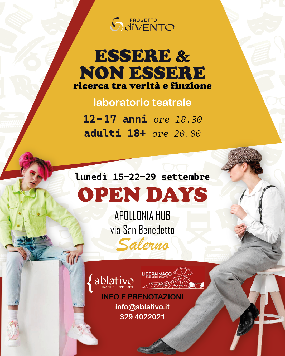 Ablativo è un’associazione culturale con sede a Salerno che da anni promuove progetti di programmazione teatrale e musicale, progetti di educazione e formazione attraverso le arti. Liberaimago ETS è una compagnia con sede a Napoli, attiva nella produzione teatrale con spettacoli per adulti e di teatro ragazzi, impegnata nella formazione e realizzazione di laboratori in contesti diversi.