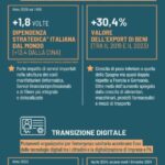 Negli ultimi 20 anni, l’Italia ha difeso il proprio posizionamento come paese esportatore, ma la concorrenza delle economie emergenti ha messo in crisi una parte rilevante delle industrie su cui si basava la specializzazione nazionale, che si è gradualmente modificata. D’altra parte, la lentezza nello sviluppo delle attività terziarie intense in conoscenza, oltre che in una debole dinamica delle esportazioni di servizi, si è riflessa in un’accresciuta dipendenza dall’estero.