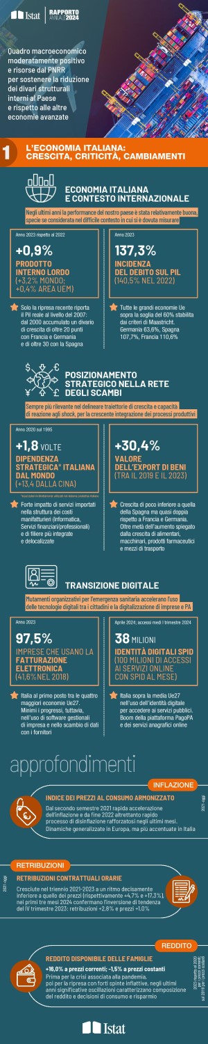 Mercoledì 15 maggio alle ore 11.00 a Palazzo Montecitorio, il Presidente dell’Istat Francesco Maria Chelli ha illustrato il “Rapporto annuale 2024. La situazione del Paese”.