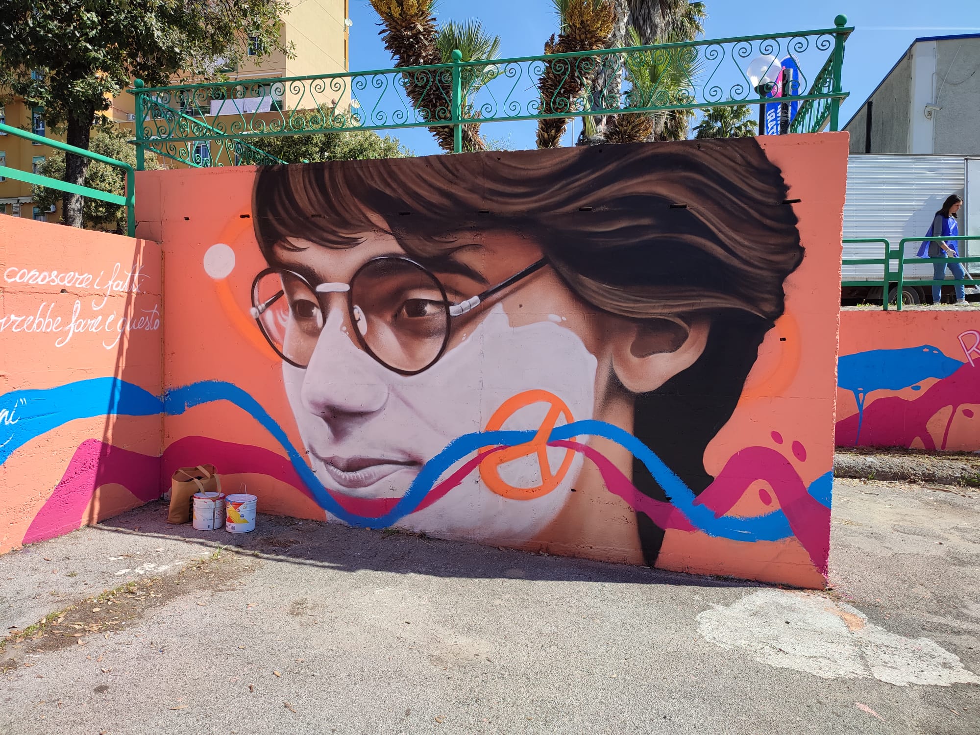 Affinché l’azione di sensibilizzazione riscuota la sua massima efficacia è necessario che il messaggio resti visibile e permanente, per questo lasciamo sempre al nostro passaggio, una traccia di arte e di bellezza così come abbiamo fatto in questo caso con il bellissimo murale di Giancarlo Siani, firmato da Stefano Santoro (aka McNenya) e Giuseppe De Martino (aka PeppeAmed) e che i salernitani potranno apprezzare da oggi presso il parcheggio del Centro Sociale di Pastena.”