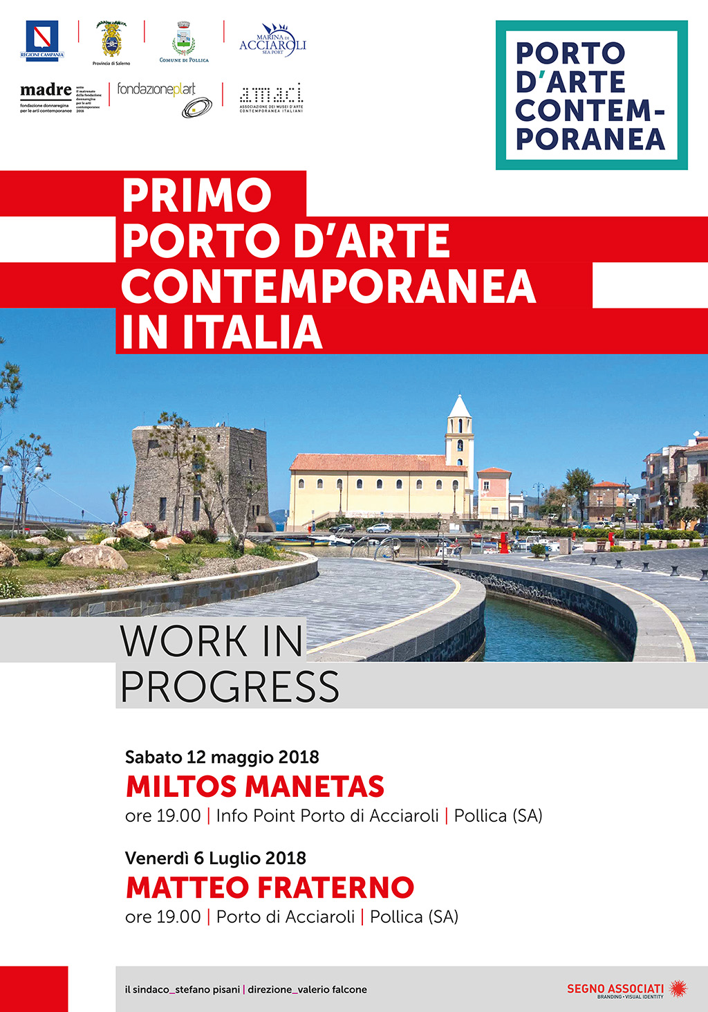 Si tratta, in effetti, di un lavoro parte di un più grande progetto legato alla Dieta Mediterranea. Oltre ad una panchina con incisa, nella parte superiore, la scritta in greco “Ricordati di Berillos” riferita ad un graffito rinvenuto su di una parete del sito archeologico di Oplontis. Il graffito è una sorta di monito e Berillos era un liberto di Nerone, e su questa panca Fraterno darà vita ad una installazione con lui seduto a guardare il video in una specie di tributo ai coniugi Keys e al Sindaco di Acciaroli Angelo Vassallo ucciso nel 2010. Ancora una volta un modo di creare arte “site-specific” che da tre anni, in estate, ha fatto di Acciaroli un museo diffuso come nel progetto originale ideato da Valerio Falcone e appoggiato dal Sindaco di Pollica Stefano Pisani, con, fin dalla nascita, il Matronato del Museo Madre – Fondazione Donnaregina per le arti contemporanee di Napoli e il Patrocinio della Fondazione Plart, di AMACI, della Regione Campania, della Provincia di Salerno e del Comune di Pollica. In più, in questa occasione per Fraterno, ci sarà anche il Patrocinio del Parco Nazionale del Cilento e Vallo di Diano. Il Porto d’Arte Contemporanea ogni anno si svolge in tre sedi diverse: il Porto di Acciaroli, Palazzo Vinciprova a Pioppi, e Palazzo Principi Capano di Pollica. Al centro di questa iniziativa, che cerca di portare l’arte, e di farla fruire in modo naturale, nei luoghi frequentati dai cittadini e dai turisti, il rapporto tra il territorio e la sua identità storico-culturale, intesa come parte della più vasta area del Mediterraneo, e i linguaggi e i contenuti della creatività contemporanea mondiale. Dopo Lello Lopez, Riccardo Dalisi e Angelomichele Risi ospiti del Porto d’Arte Contemporanea 2015, Sergio Fermariello e Vincenzo Rusciano protagonisti del Porto d’Arte Contemporanea 2016 e il duo artistico Bianco-Valente e Eugenio Giliberti invitati al Porto d’Arte Contemporanea 2017; nel 2018 Miltos Manetas e Matteo Fraterno realizzeranno le loro opere che rimarranno poi in dotazione dell’amministrazione comunale di Pollica. Per INFO: www.portartecontemporanea.it
