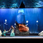 “In mezzo al mare l’acqua è azzurra come i petali dei più bei fiordalisi e trasparente come il cristallo più puro; ma è molto profonda, così profonda che un’anfora non potrebbe raggiungere il fondo; bisognerebbe mettere molti campanili, uno sull’altro, per arrivare dal fondo fino alla superficie. Laggiù abitano le genti del mare…” Queste le parole con cui il grande Andersen apre uno dei suoi maggiori capolavori ed è questo “profondo blu” che viene rappresentato in palcoscenico delle “piante più strane, fiori e cespugli dalle foglie tanto leggere che basta un piccolo spostamento d’acqua per scuoterle. Tutti i pesci, grandi e piccini, guizzano tra i rami come fanno gli uccelli tra gli alberi”, tutto animato in una commedia musicale scoppiettante. “Ariel, principessa del mare” è un sorprendente spettacolo dal sapore “sottomarino” che, attraverso la storia della bella e indolente sirena dai capelli rossi e del suo amore per il principe Eric, propone ai bambini un “racconto di formazione”, permettendo loro di approcciarsi al difficile argomento dell’accettazione di sé e del diverso, nonché al delicato e attualissimo rapporto genitori-figli. Frizzanti ed emozionanti canzoni dal vivo accompagnano il turbinare dei personaggi sulla scena quasi a ricreare il dondolio delle onde del mare. Un mare in cui bisogna un po’ perdersi per ritrovare se stessi e capire l’importanza degli affetti.”